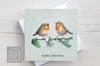 This listing is for a Festive pair of singing Robins wearing Santa Hats This is a watercolour illustration in a splashy watercolour style. You get 2 PNGS the air of Robins and a square background. Use with or without the background. There are more animals in this collection you can see them in my shop. Mix and match the backgrounds between the sets.