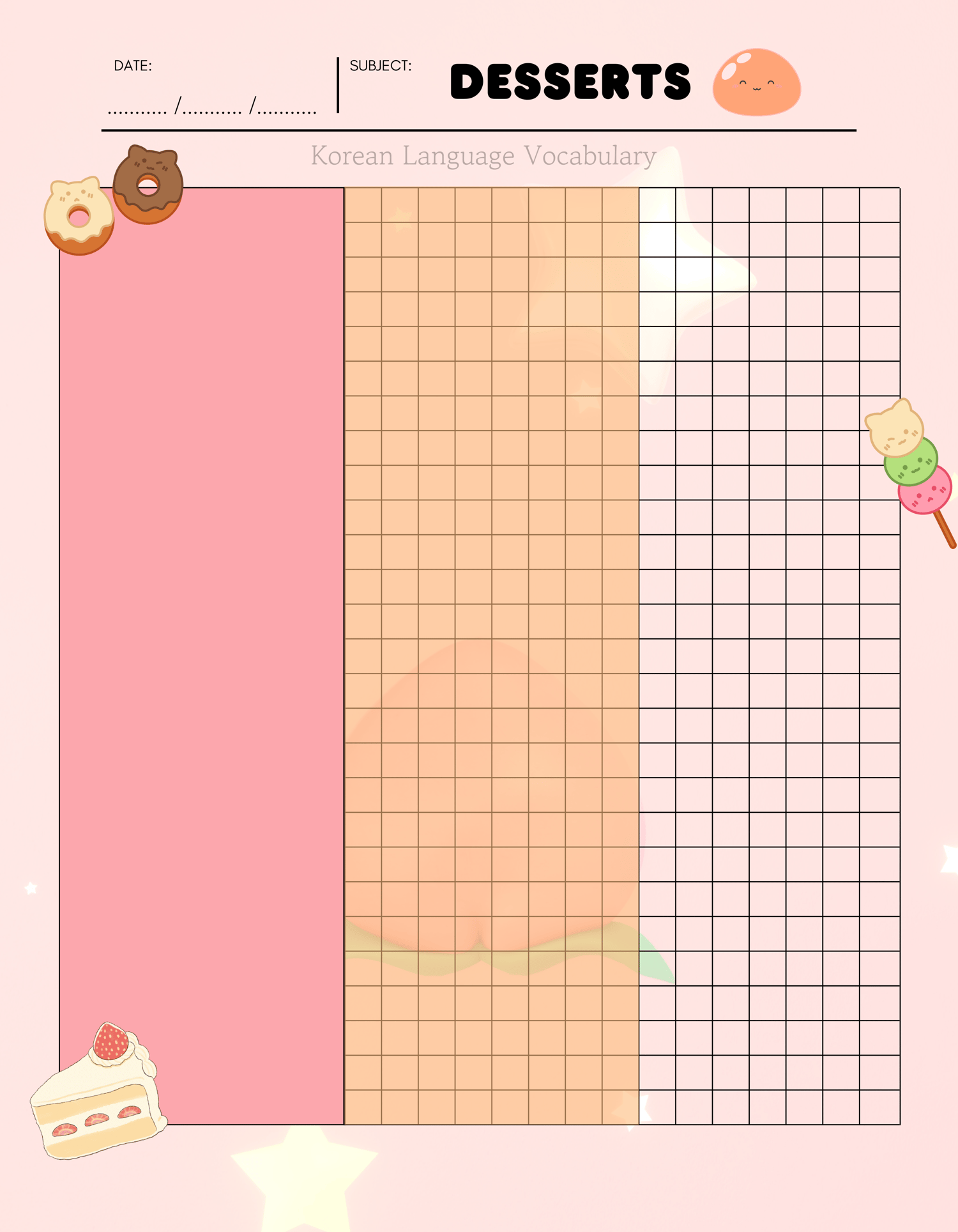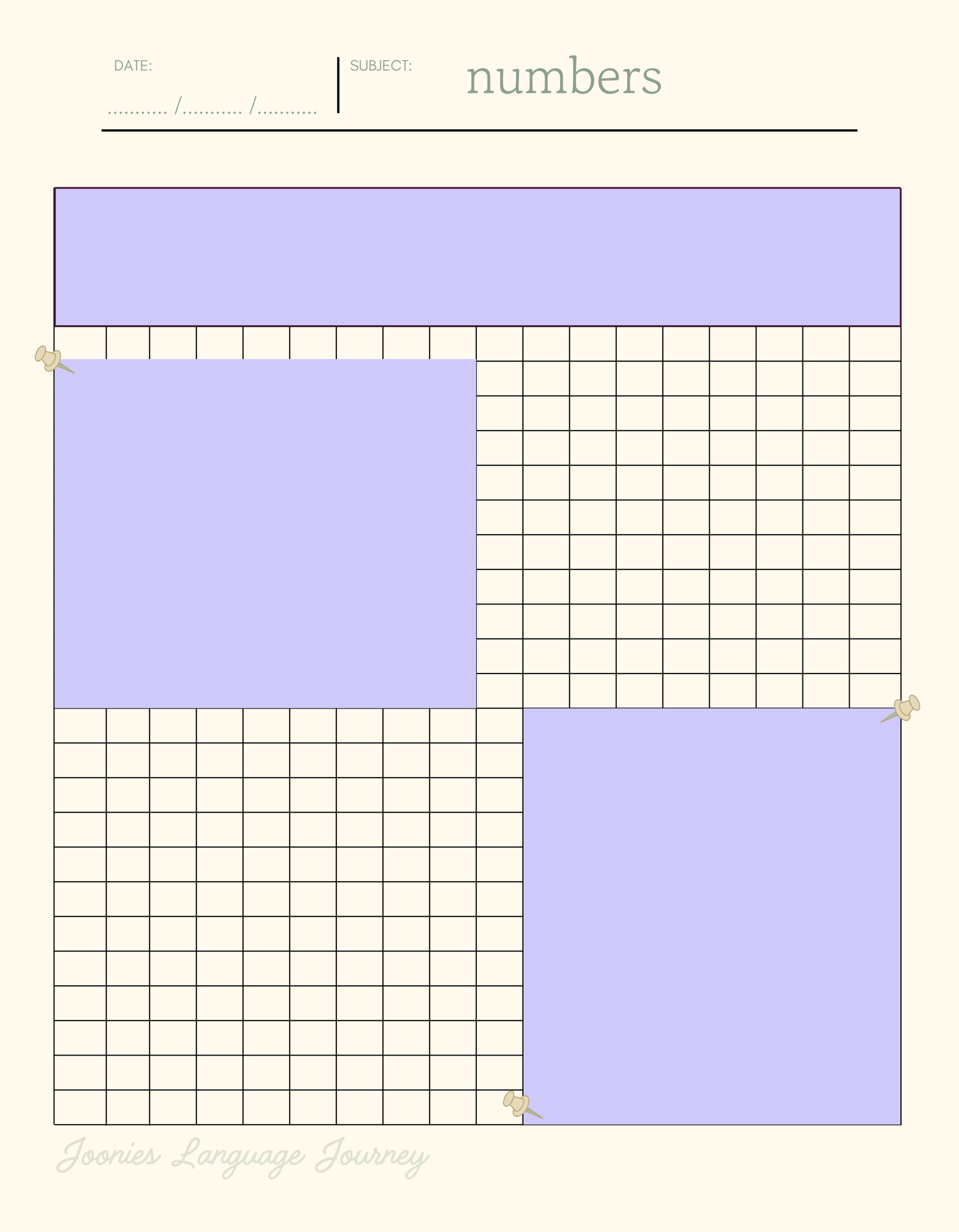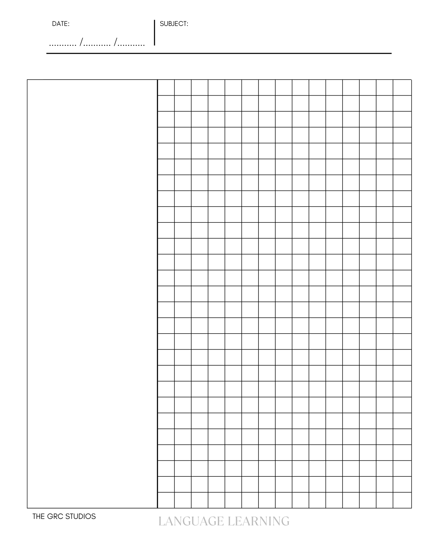 Language Learning Grid and note sheet (8.75 x 11.25 in)