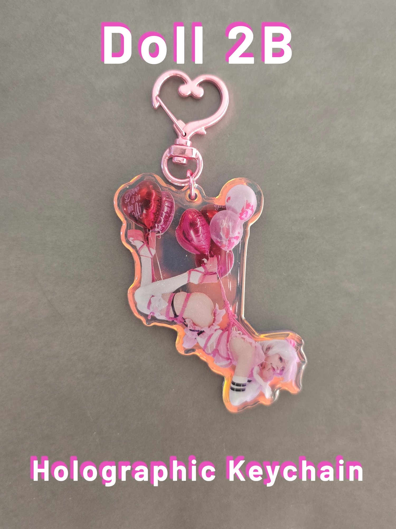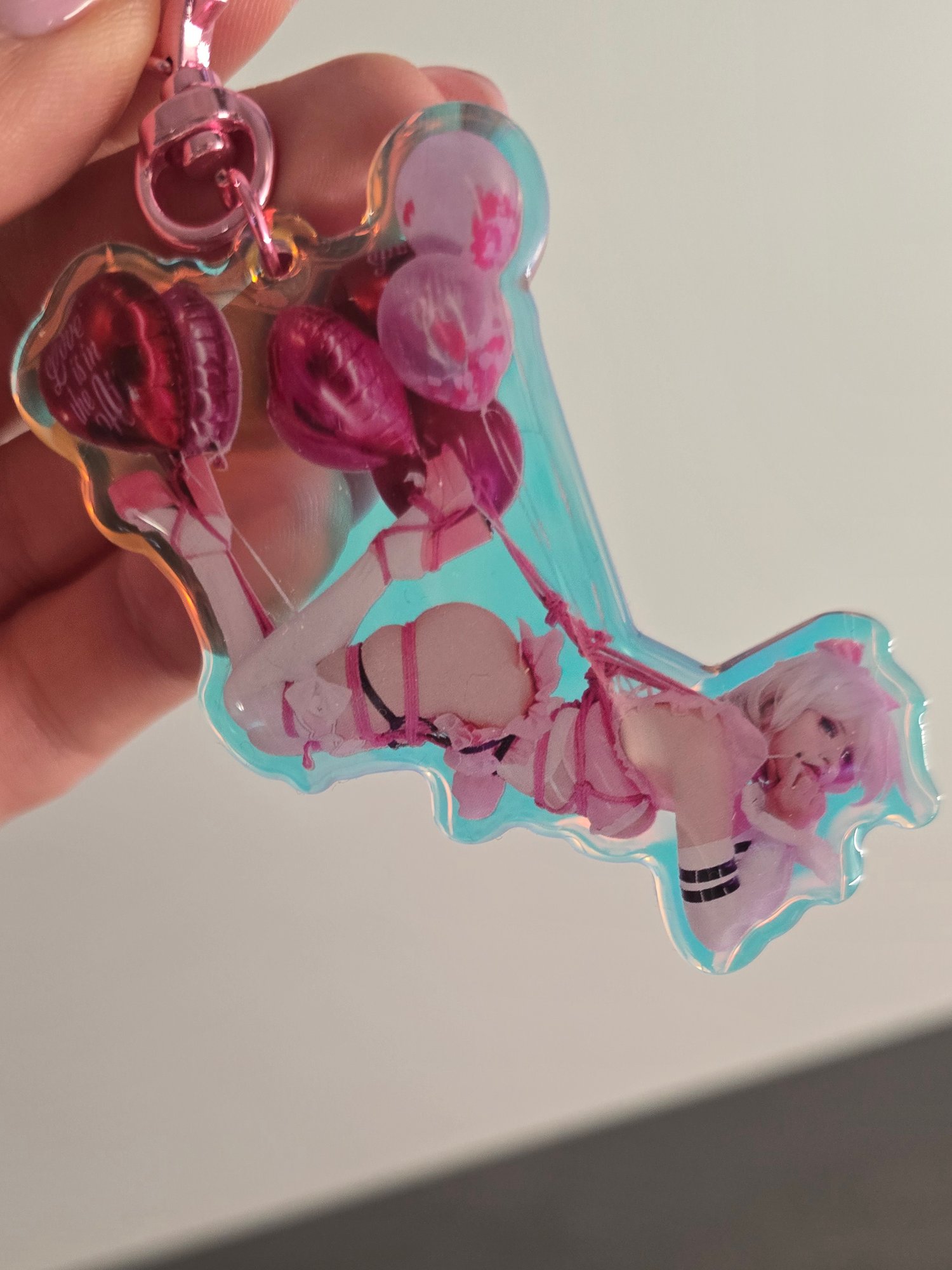 I had the idea of a merch series of susp3nded Yuke - turned into keychains! I am planning a couple more designs, but first off a fan favorite - Yuke-2B Doll in pink ropes and with baloons~ When holding this Keychain it almost looks like you're holding her up yourself~