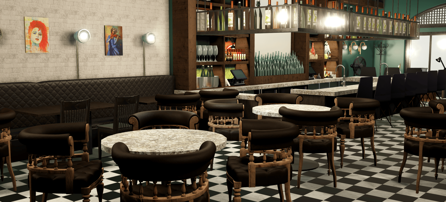 - ☕ Fully detailed café interior (counter, seating, displays)