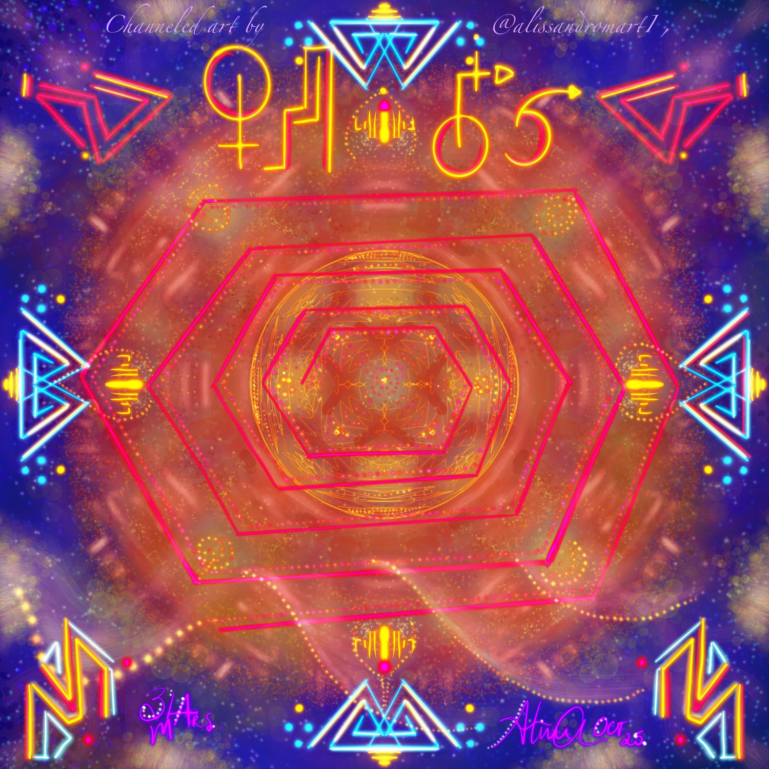 All the light-love code information within these works of art was channeled in the twin flame union of Fidel @ilumina.me7 and Aline @aline_alissandrom & @aline_alissandromart, and exercises available on Instagram were used to connect with the 3I Atlas that I found from my sister Clara @pausameditationstudio, as well as the use of these same light codes to decrypt further information regarding the 3IAtlas; The channeled energy is totally collective for the greatest good of humanity and is a channeling in unity granted by the high spheres of light ascended masters, archangels, families of light and stars. Every work of art contributes to being able to support my life on this my beloved Mother Earth, in my growth as a visual artist, channeler and holistic therapist, in addition, a third part of this energetic exchange is reserved to continue spreading and expanding the light of the free encounter of The Appointment with the Ascension, in which I participate monthly as a facilitator with my Luz family.