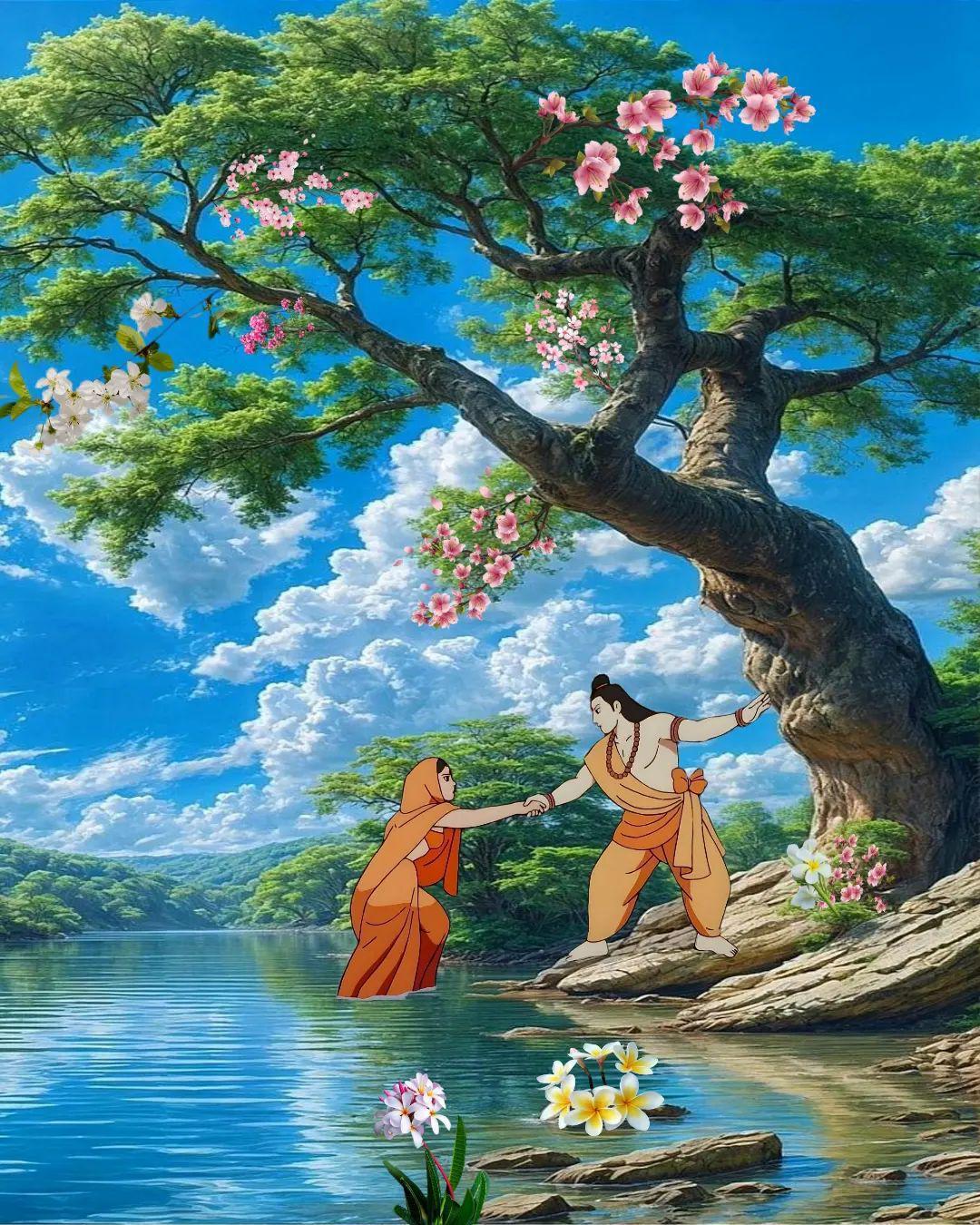 Lord Rama and Sita Beautiful Illustration/Wallpaper Art