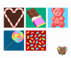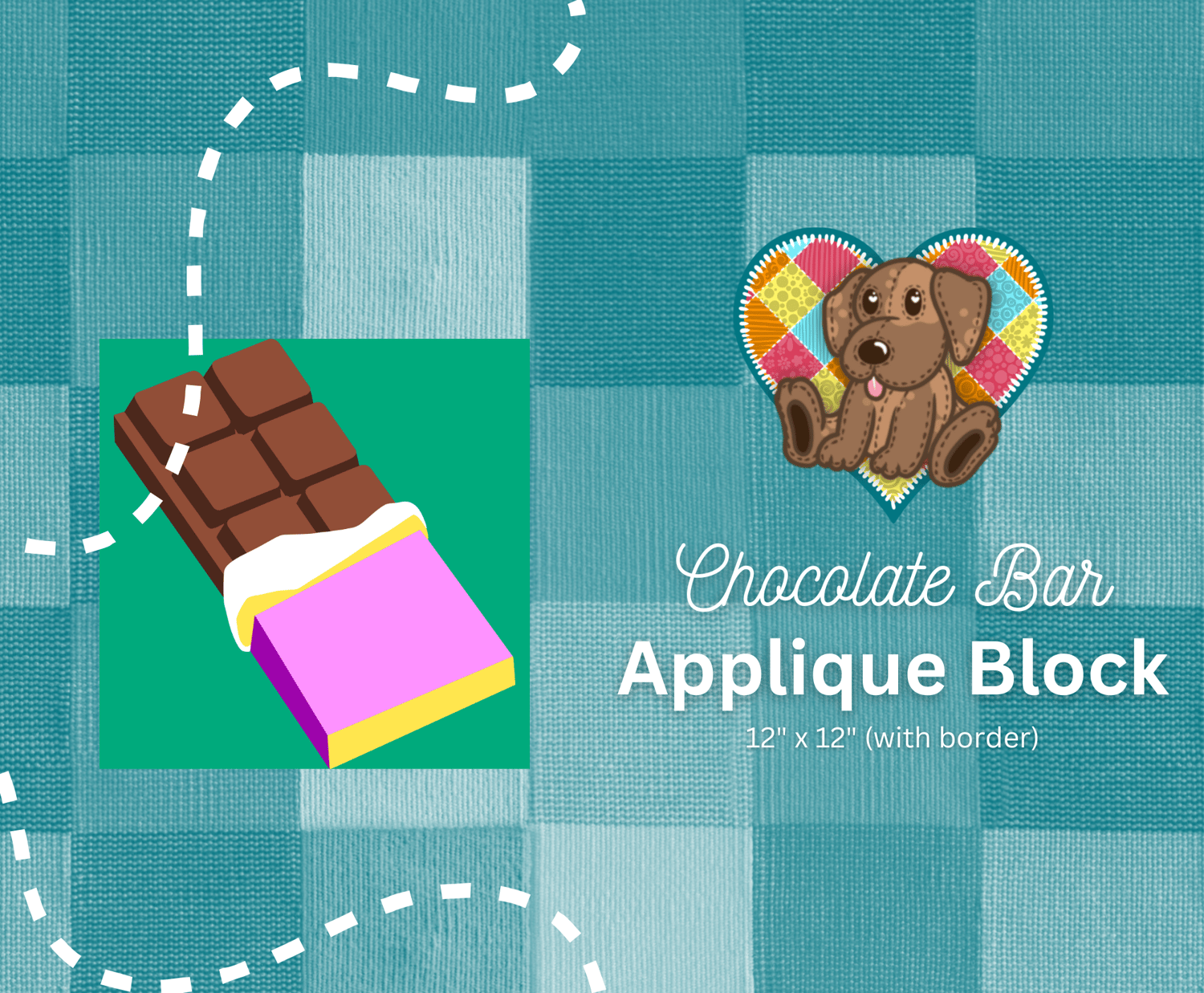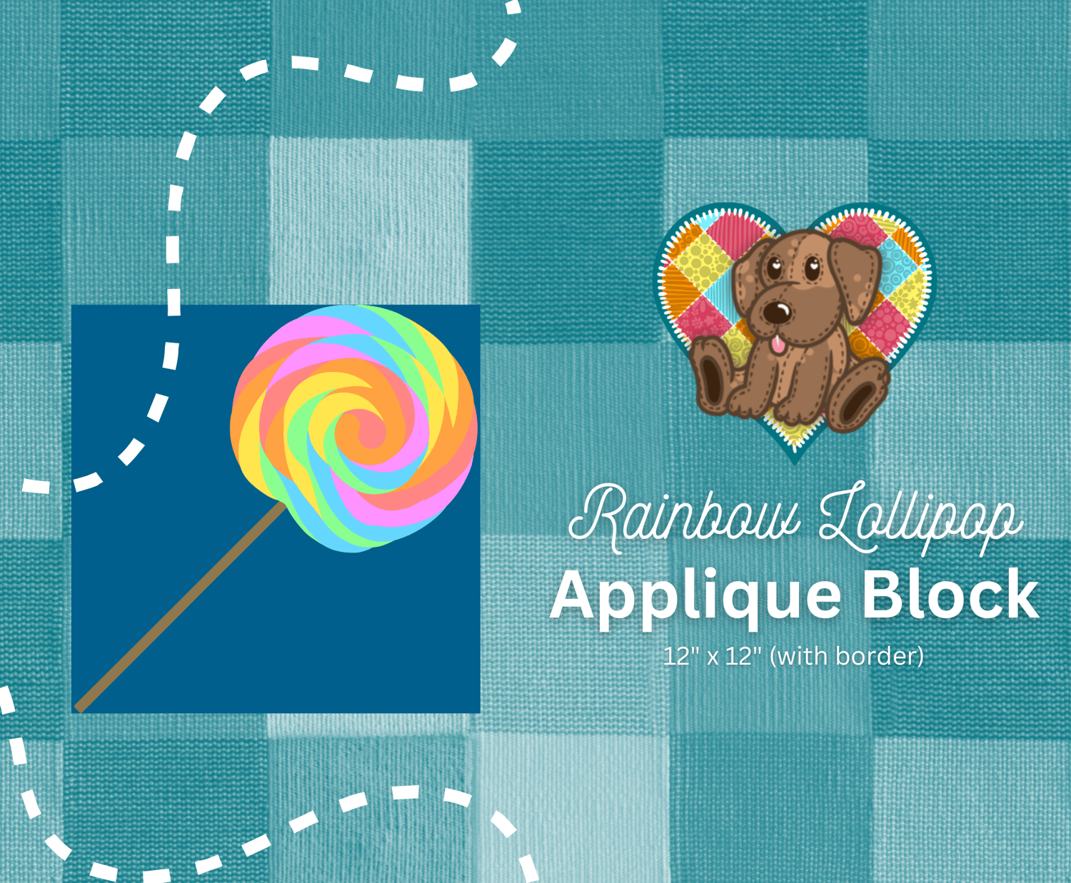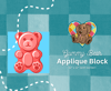 Contains Patterns for 5 candy appliques: Candy Cane Heart, Chocolate Bar, Gummy Bear, Rainbow Lollipop, and Jelly Beans. All quilt patterns are available for download as pdf files. Each pattern includes templates to make a 12" applique Block.