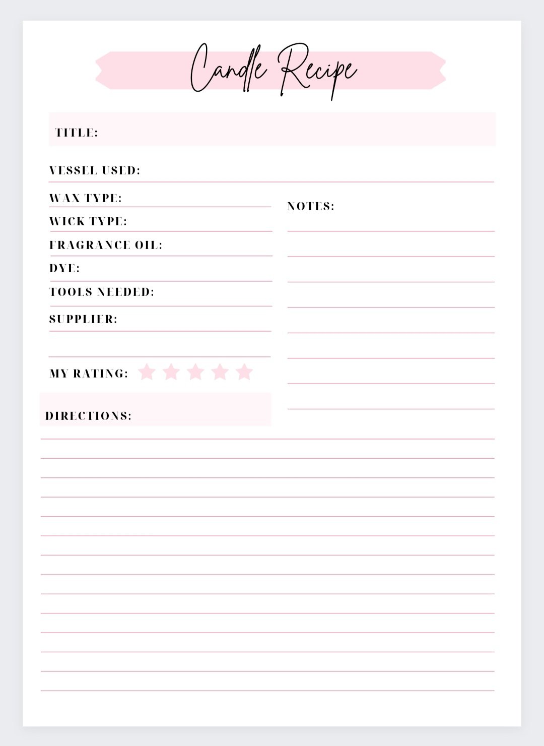 Candle Recipe Sheets to prefect your candles, wax melts, room sprays, etc.