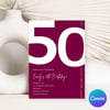 Elegant Burgundy 50th Birthday Invitation Template | Chic Fifty Milestone Party Invite | Editable & Instant Download