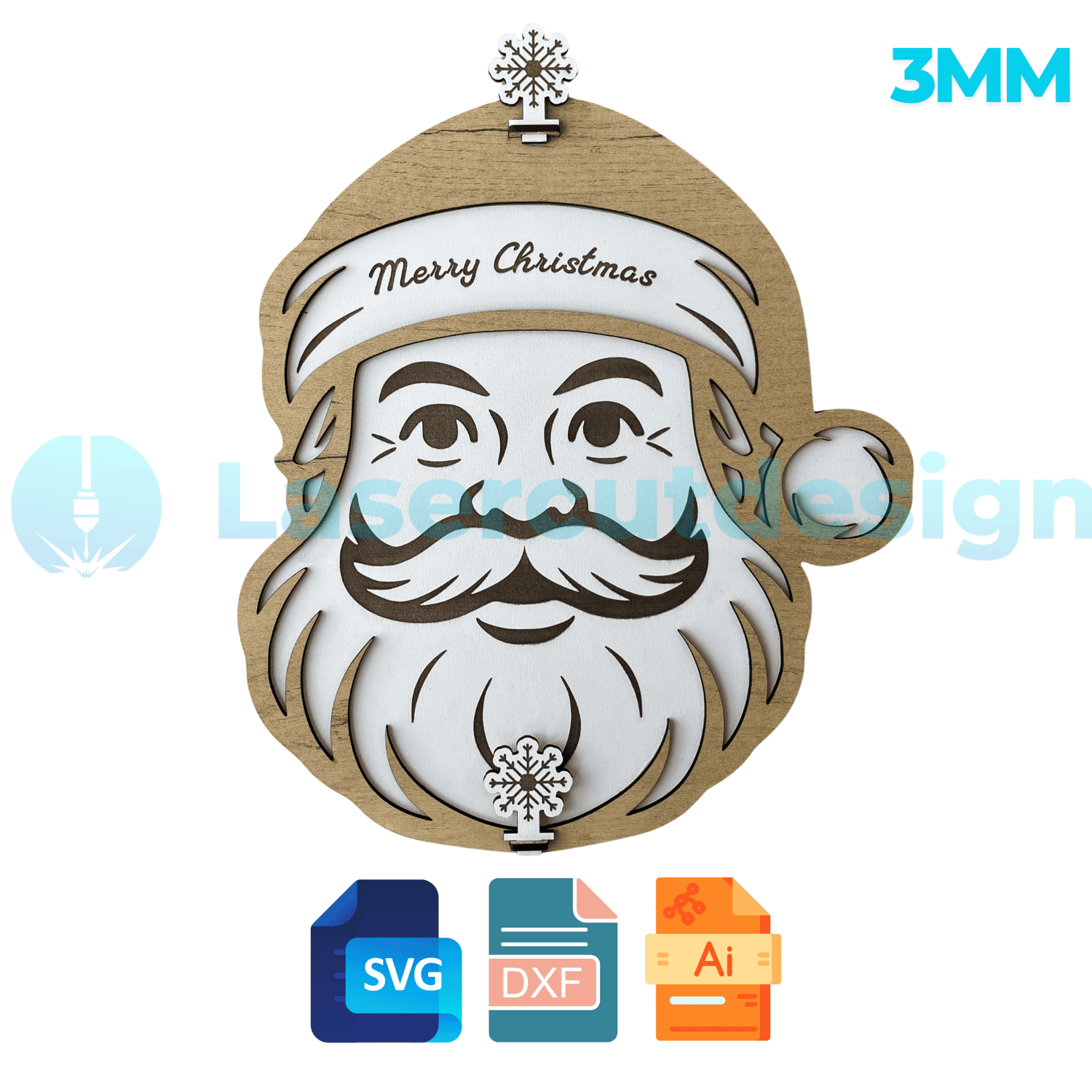 Santa Claus Gift Box SVG | Christmas Candy Box Laser Cut Files | 3mm Layered DXF AI Template