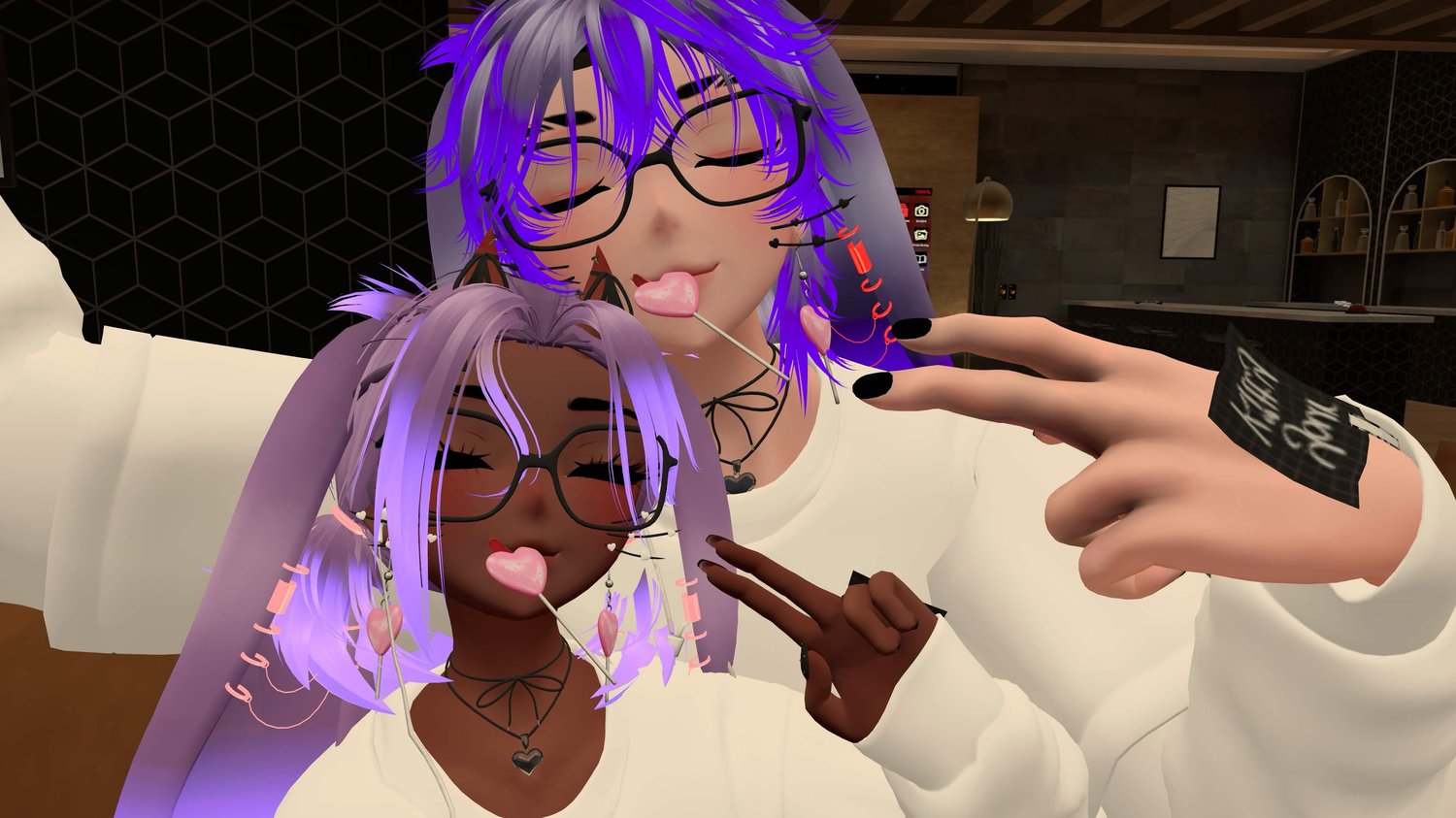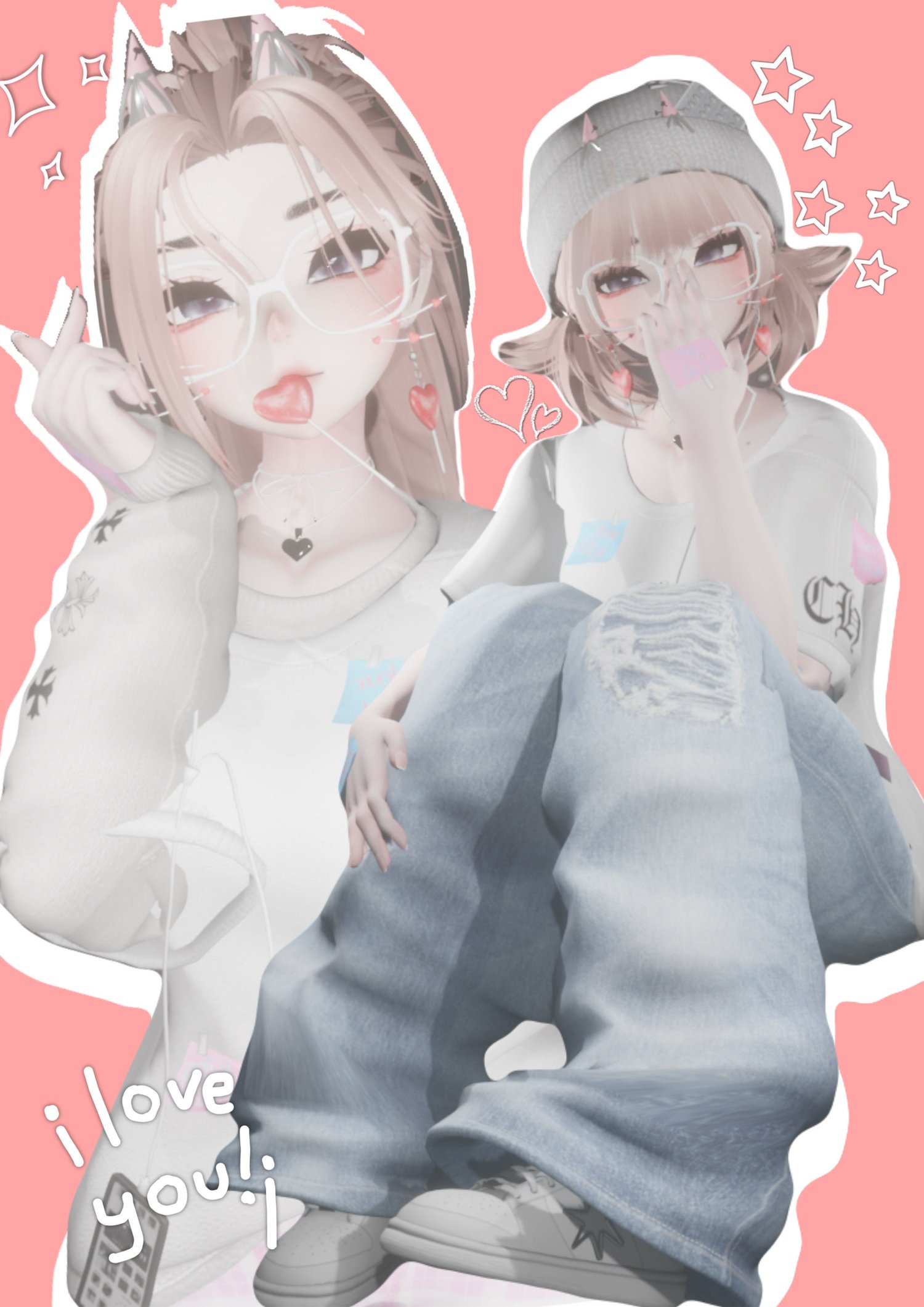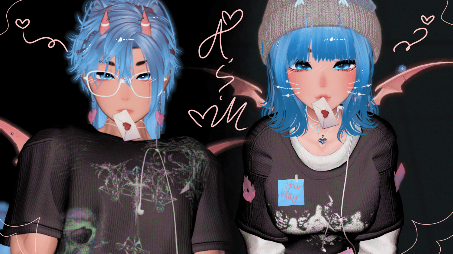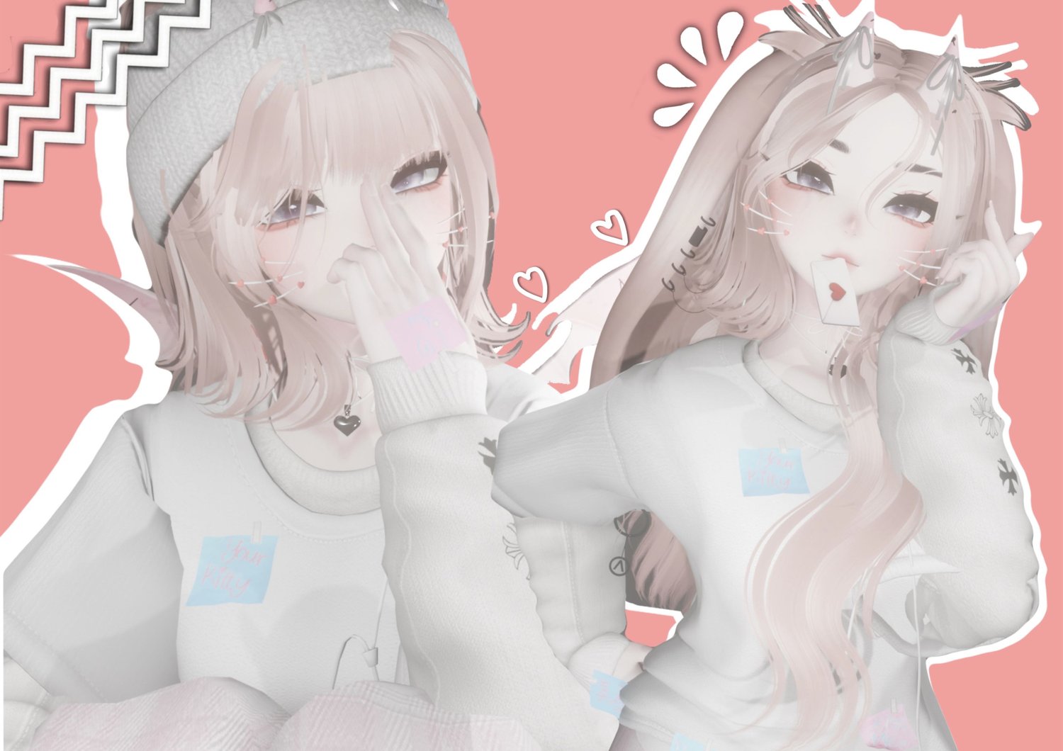 Accessories: Beanie-Suki, Glasses-lovelyslocker, Earrings-AikaVR, Earbuds/Phone-Suki, Lolipop-AikaVR, stickynotes-AikaVR, Love letter-gmsboxvr, choker- teacakezz, whiskers-AikaVR, Nails-Suki