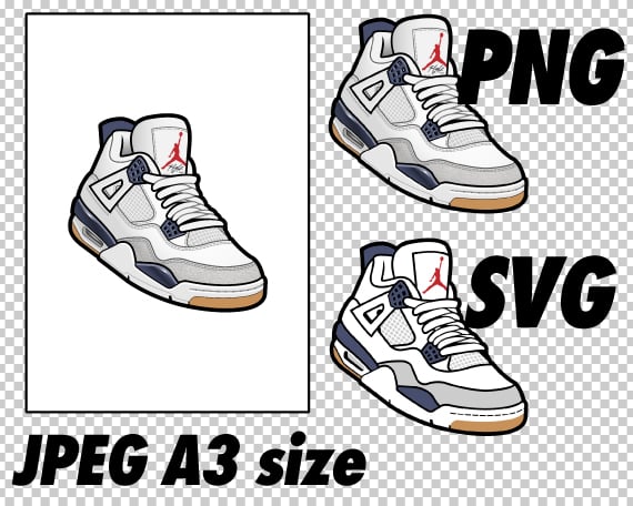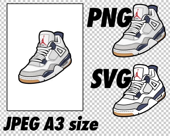 Air Jordan 4 x Nike SB White Navy JPEG PNG SVG digital sneaker art