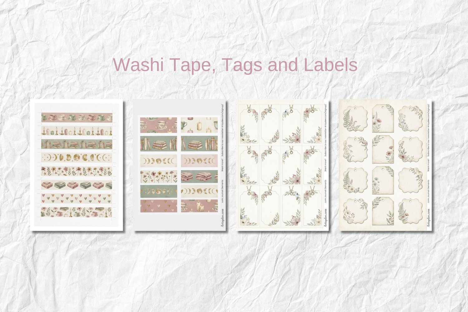 ⋒ Blank tags and labels for your own words ⋒ Decorative labels for journaling ⋒ Washi tape strips to print and cut
