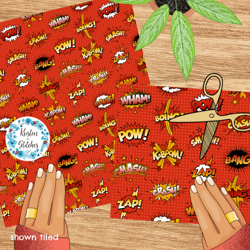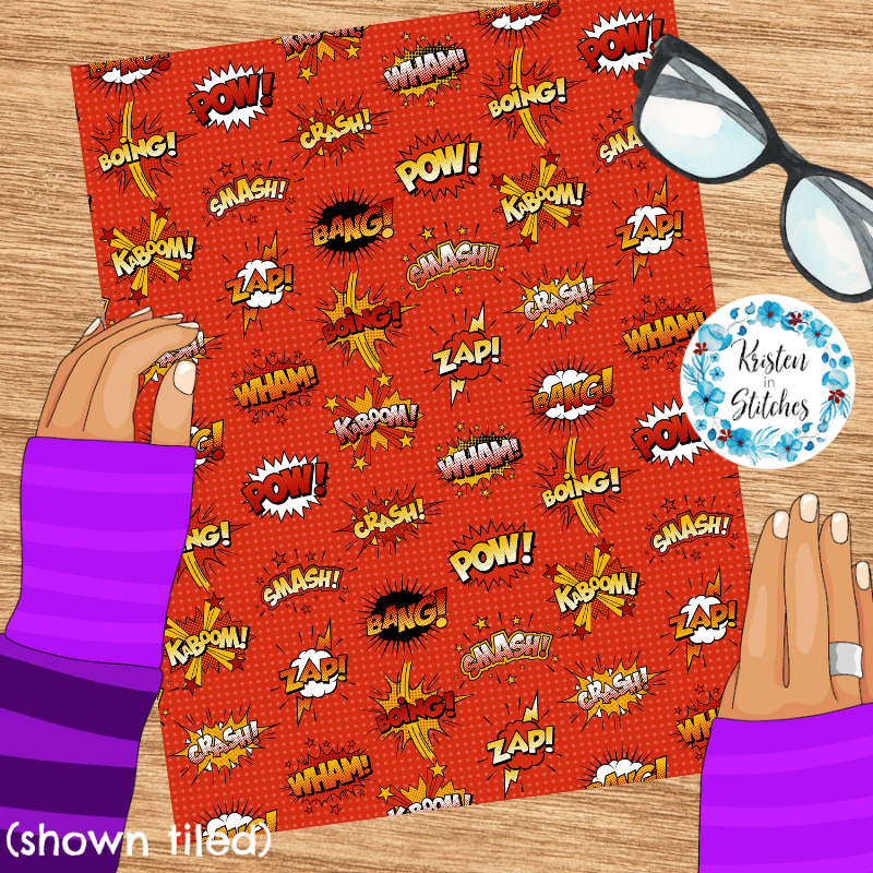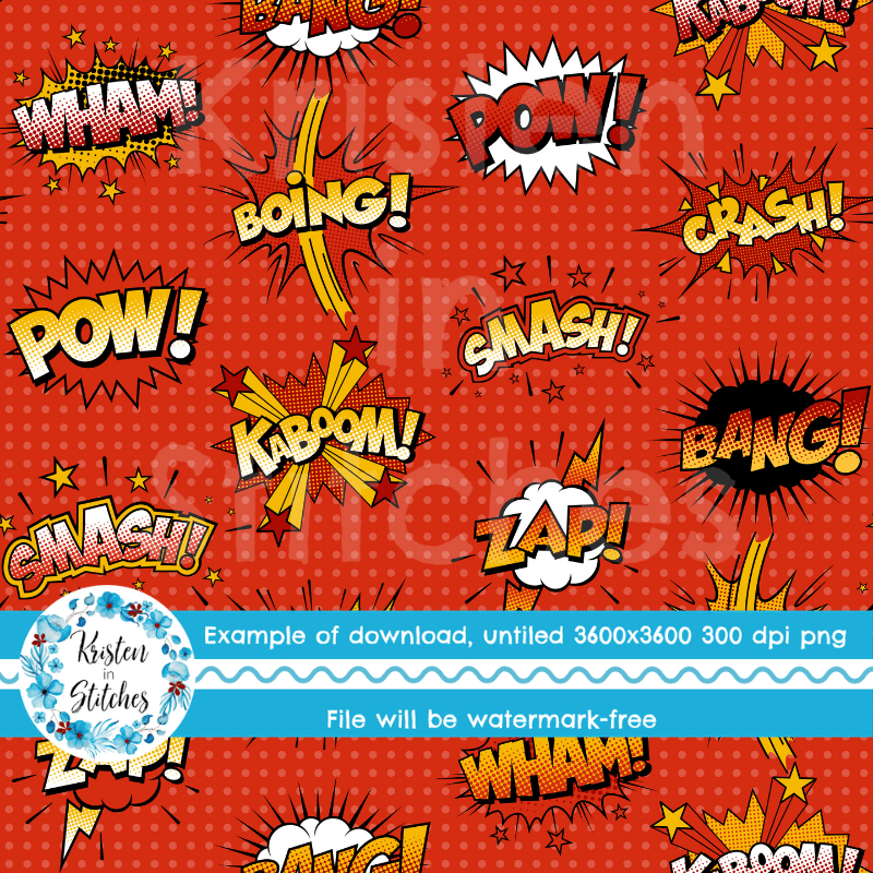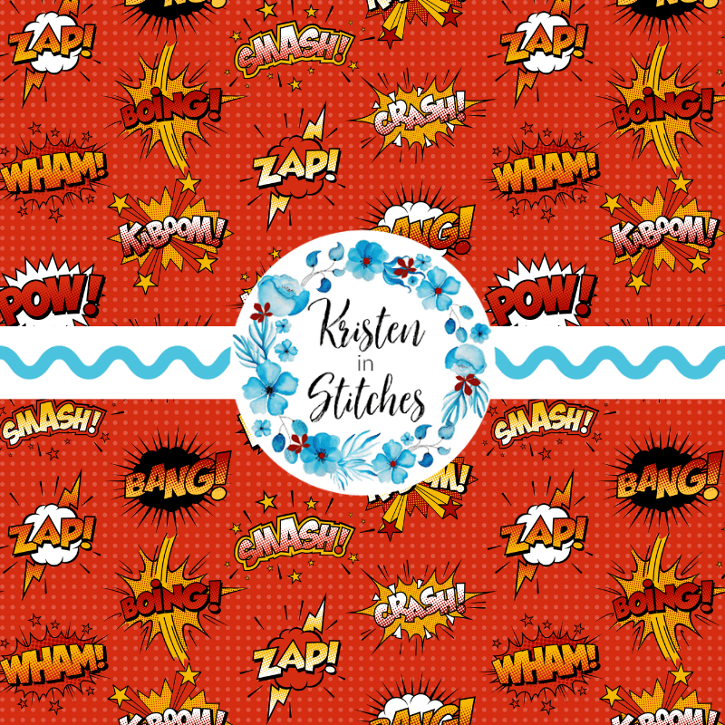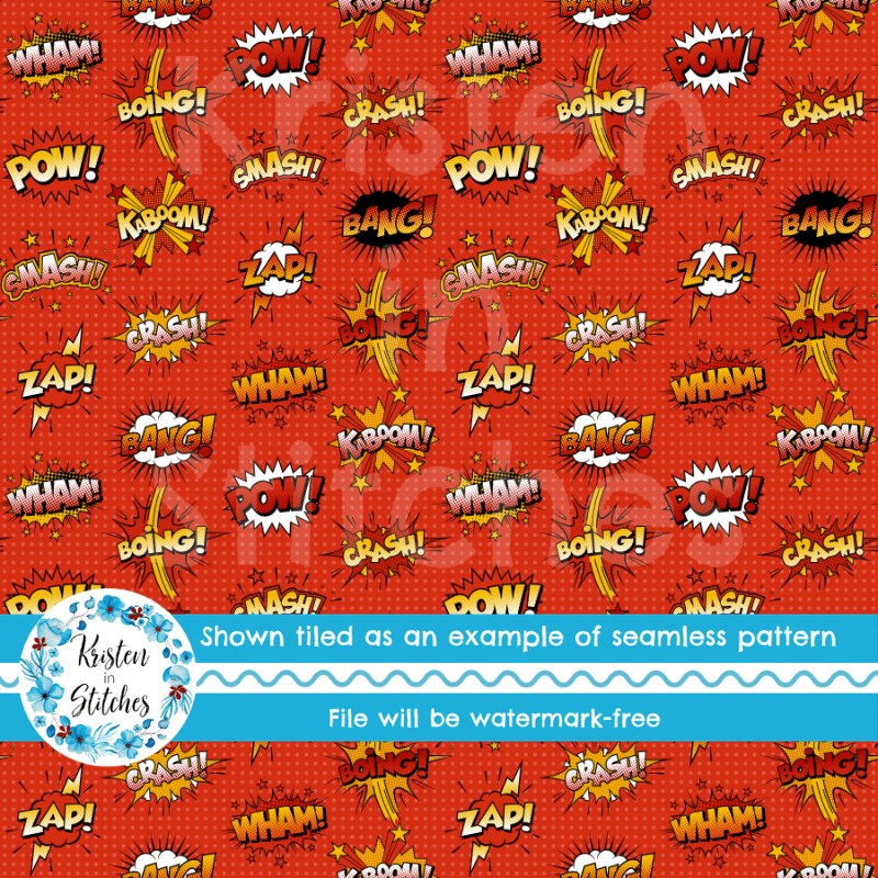 Superhero Comic Strip Bursts Seamless Pattern, Crash Boom Pow, Red