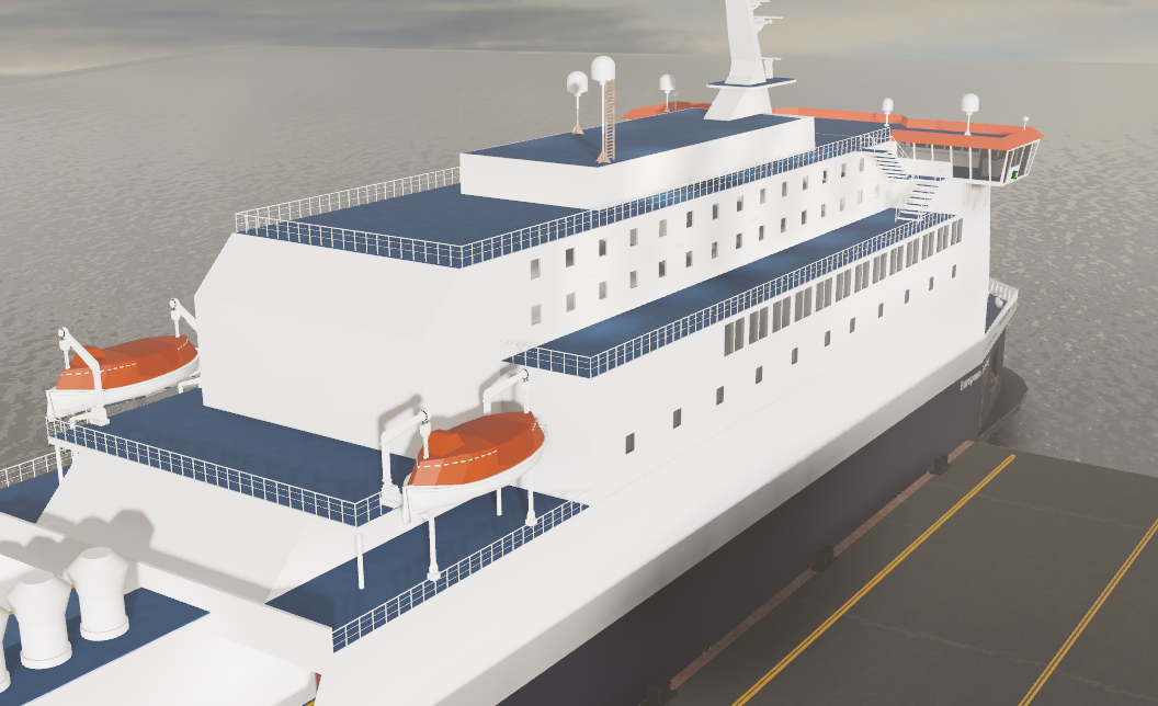 This is a 1:1 copy of the P&O's vessel "European Seaway" which operated between Dover and Zeebrugge in the 1990's then changed to Dover to Calais from 2003 to 2022 before being sold off. This was the first of four vessel made of its kind. It's sister ships all got converted in 2000's to accomodate place for passengers which was vital for this route.