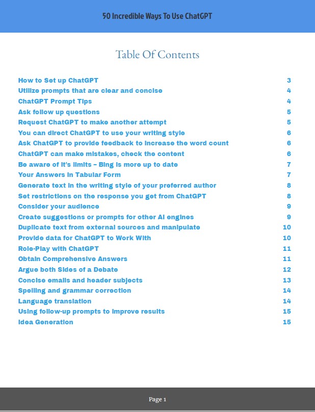 50 Incredible Ways To Use ChatGPT is an invaluable resource for anyone serious about using ChatGPT for Work, School, College and to make money $$$. ChatGPT and future AI resources will change the world and the right time to get on board is now!