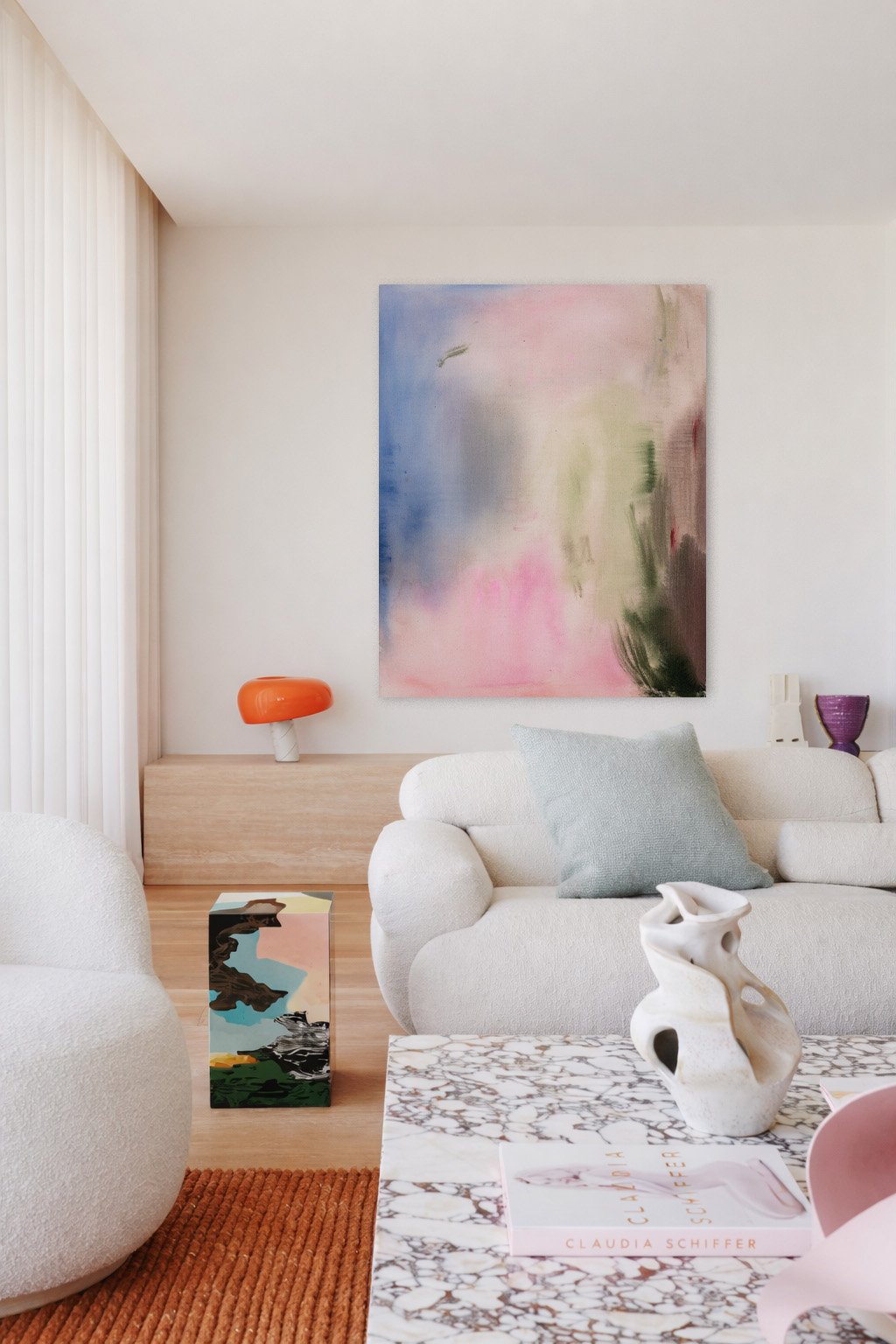 While my recent practice has focused on surreal portraiture, abstraction has long been part of my visual language. In 2016, I created one abstract painting every day for a year—a self-directed study in spontaneity, emotion, and composition. That daily practice laid the foundation for how I approach abstraction now: with trust in intuition, reverence for rhythm, and especially openness to imperfection. Elements of abstraction and minimal form have even crept into my portrait work over the last few years.