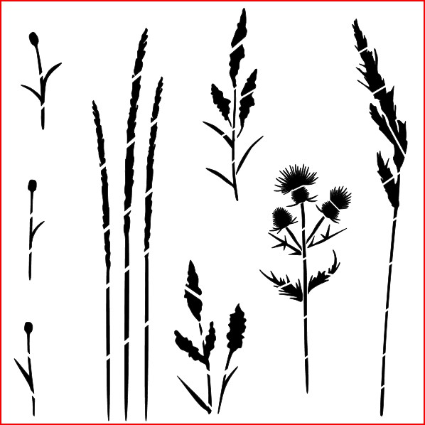 12x12 Stencil SVG & JPG - Wildflowers, Indian Grass