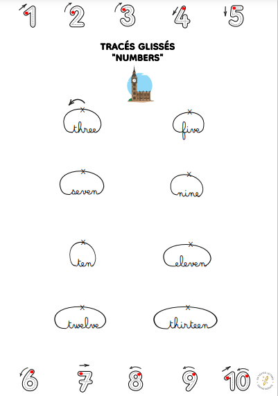 - les nombres en anglais (pour réviser aussi le tracé des chiffres)