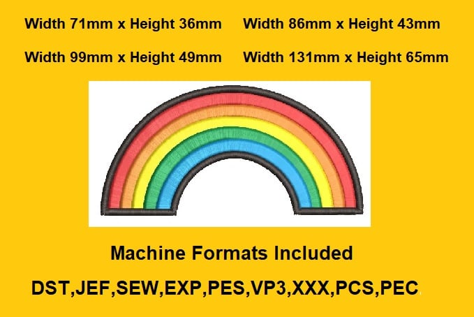 Rainbow machine embroidery design 4 Sizes Machine Formats Included DST,JEF,SEW,EXP,PES,VP3,XXX,PCS,PEC