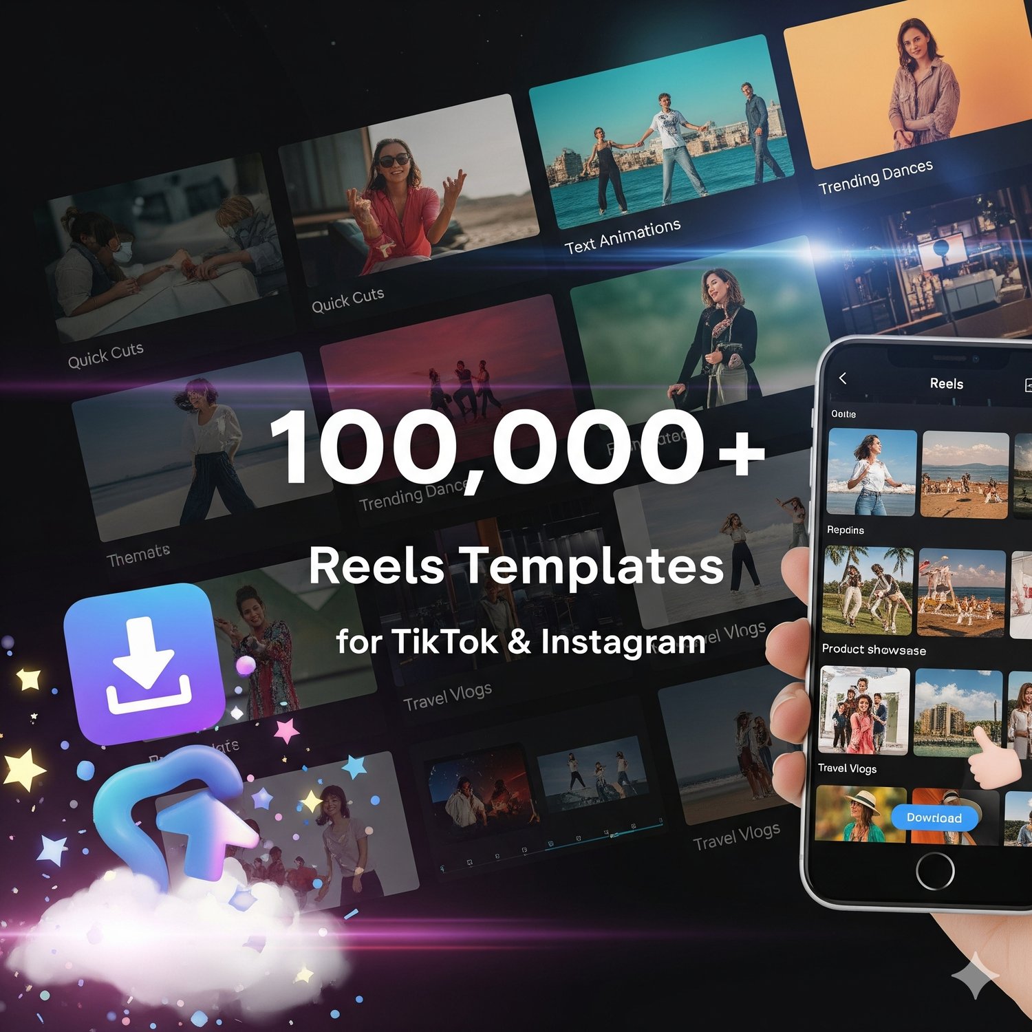 ✅ 100,000+ viral reel templates across niches