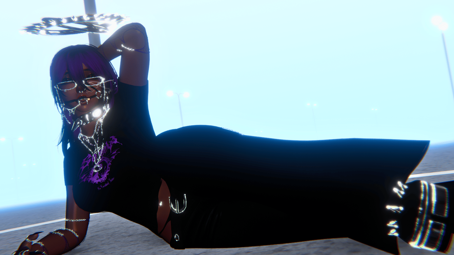 ✁‧‧‧ Toggles ⋮⋮ 2 Top Covers, 2 Leg Covers, 3 Tops, 4 Bottoms, 3 Shoes, Spiked Halo, Hat, Veil, Face Harness, Lip Chain, Glasses, Collar, Cross Tie, Basic Necklace, Cross Necklace, Viv Necklace, Fishnet Sleeves, Bracelets, Rosary, Basic Rings, Viv Rings, Basic Belt, Fur Belt, Belly Piercing, Heaven Belly Piercing, Booty Stickers, 3 Hairstyles, Hair Colors, Hue Shift, Metal Swap, Nail Length, Skintones, Eye Colors, TONS more color swaps for customization, Contacts, Blink Anim., Expression Lock, Scythe, Hand Skull, Cigarette, Magic Cirlce, Flow Toys, Drinkable Boba, Pole, Gogo Loco, & FaceTracking[OPTIONAL]