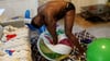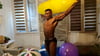 In this video the muscular Anthony have a lot of fun bursting giant balloons and destroying inflatable toys.