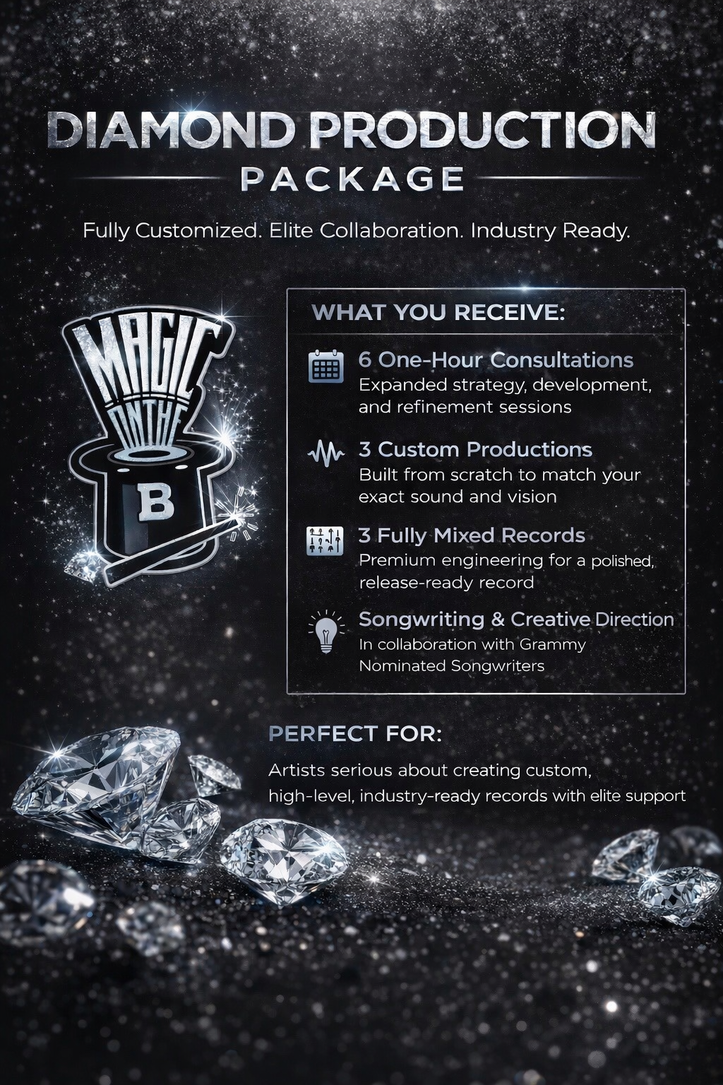 Artists looking for a fully customized, collaborative, high-level production experience.