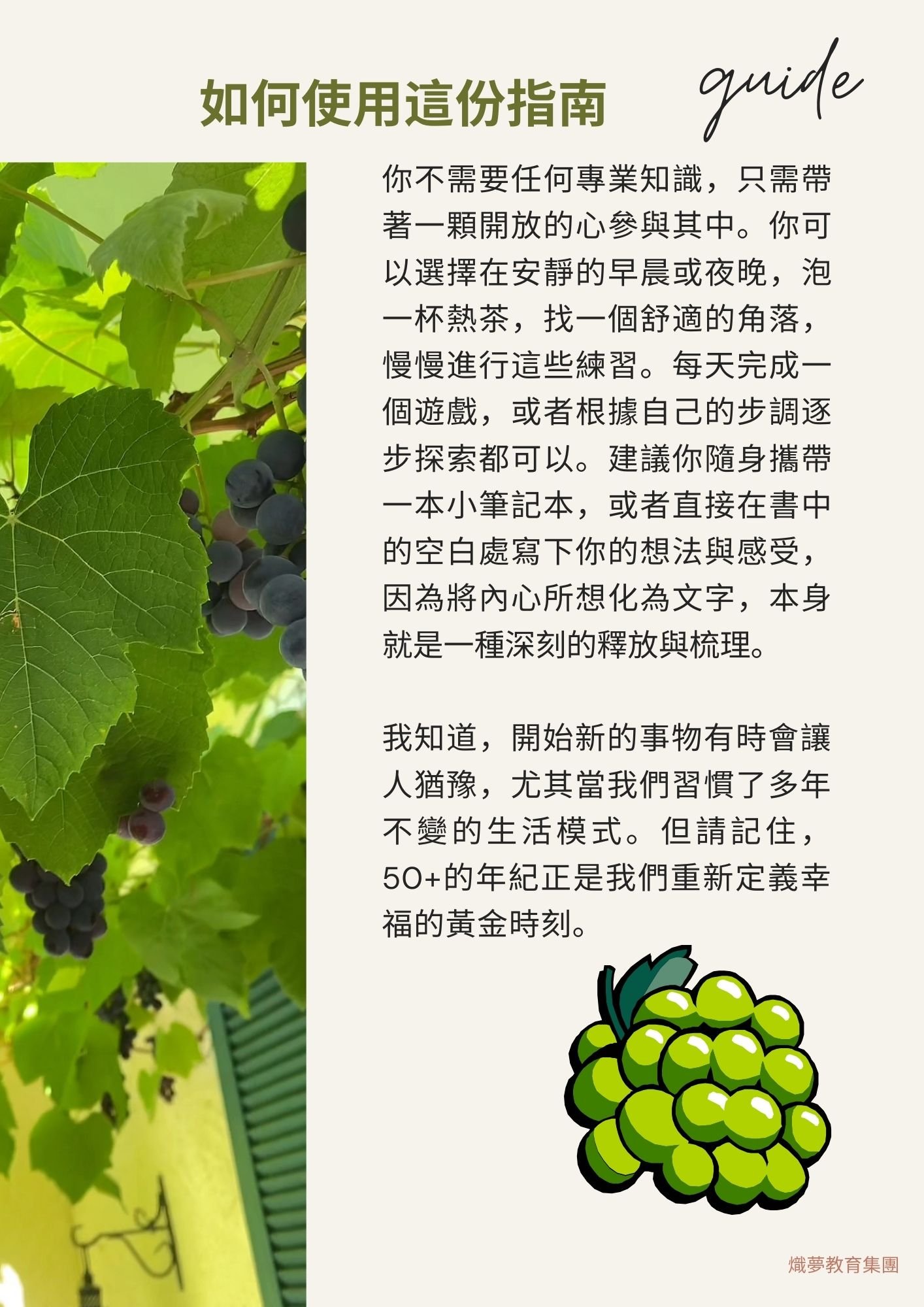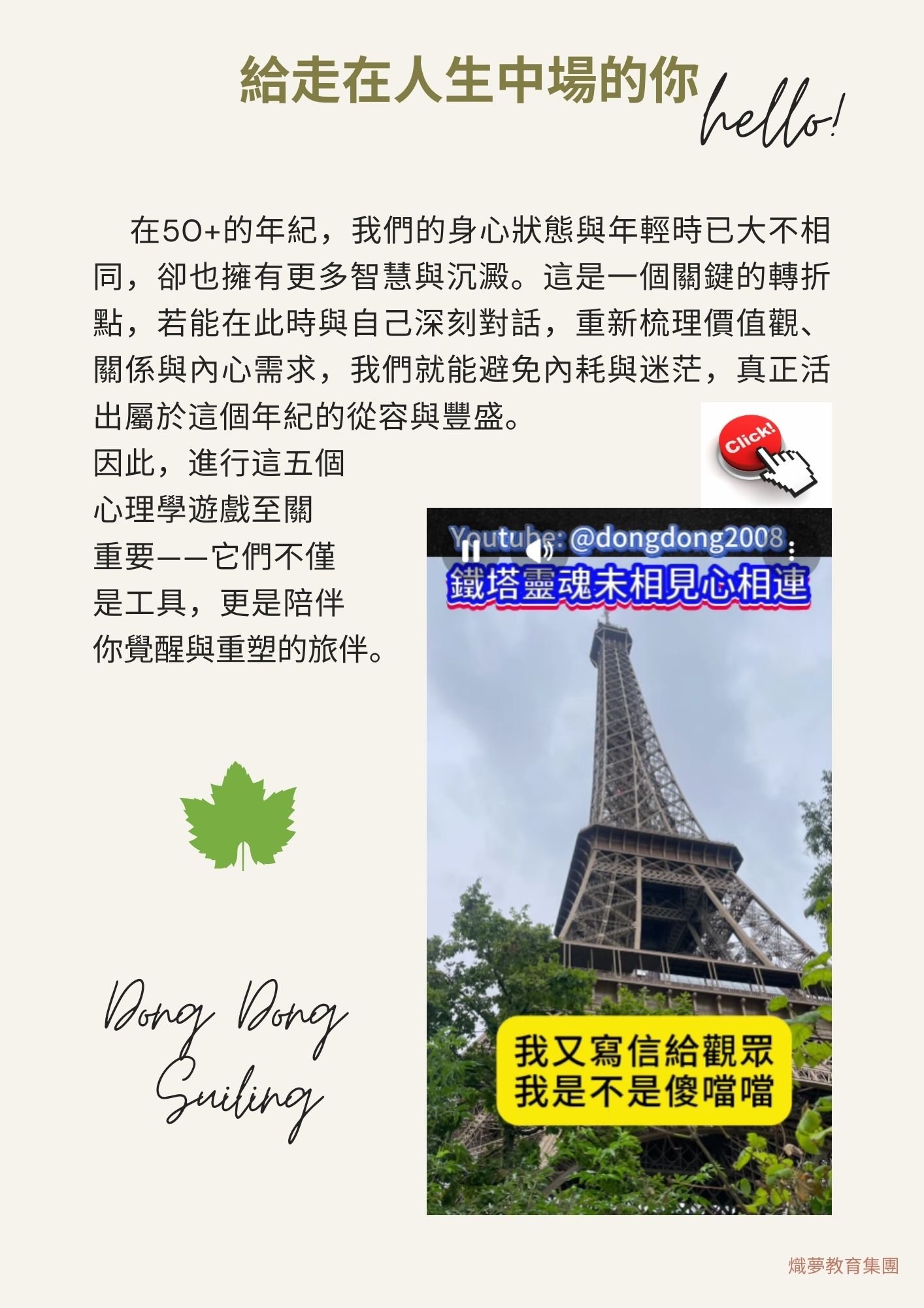 - 在50+的年紀,我們的身心狀態與年輕時已大不相同,卻也擁有更多智慧與沉澱。這是一個關鍵的轉折點,若能在此時與自己深刻對話,重新梳理價值觀、關係與內心需求,我們就能避免內耗與迷茫,真正活出屬於這個年紀的從容與豐盛。因此,進行這五個心理學遊戲至關重要——它們不僅是工具,更是陪伴你覺醒與重塑的旅伴。