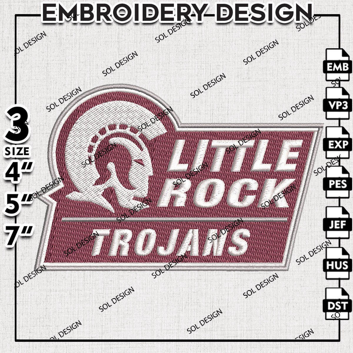 Little Rock Trojans NCAA Football Team Logo Embroidery Designs, NCAA Little Rock Trojans Machine Embroidery Files, NCAA Logo embroidery designs, NCAA Little Rock Logo, Digital Download
