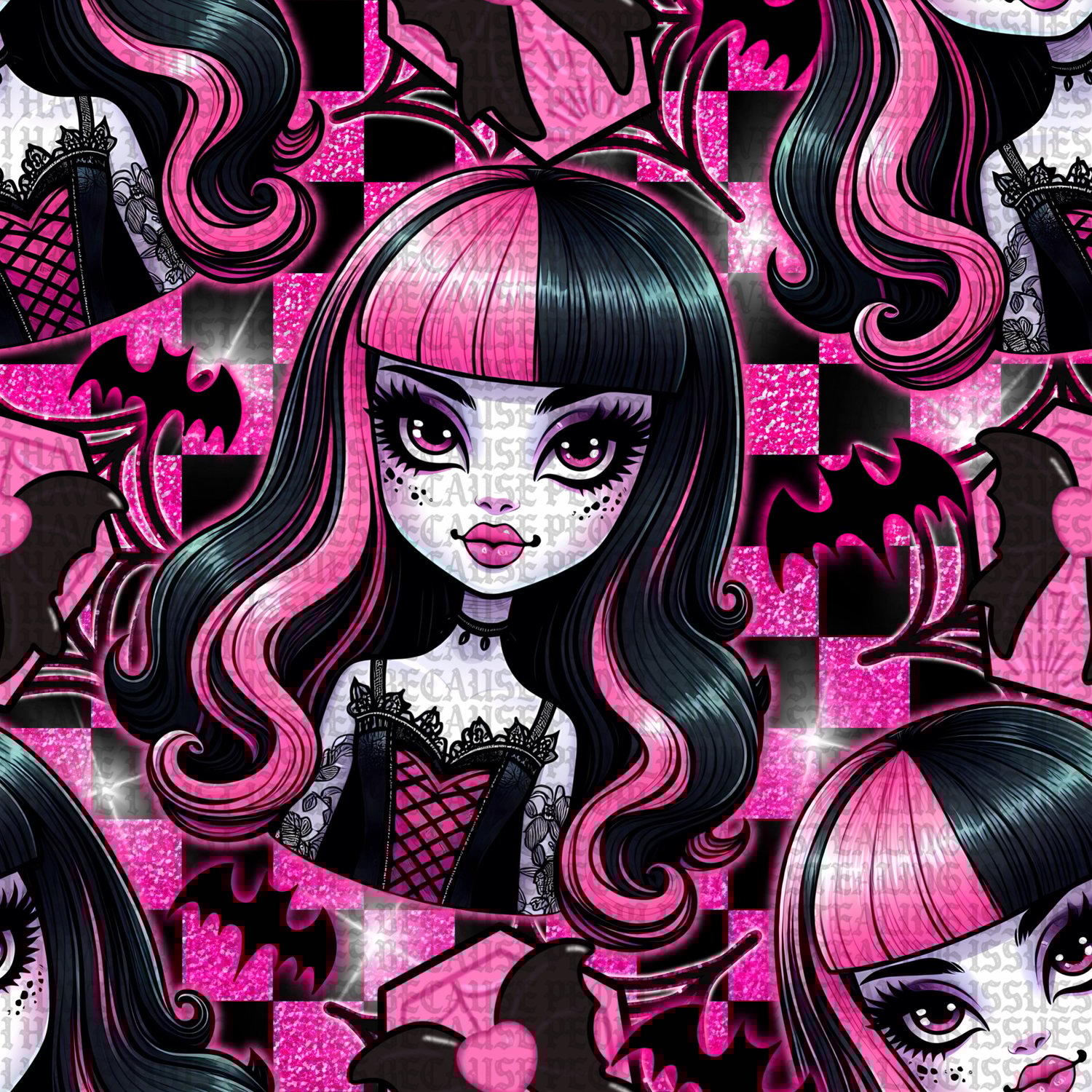 Draculaura seamless hot pink glitter checkered background