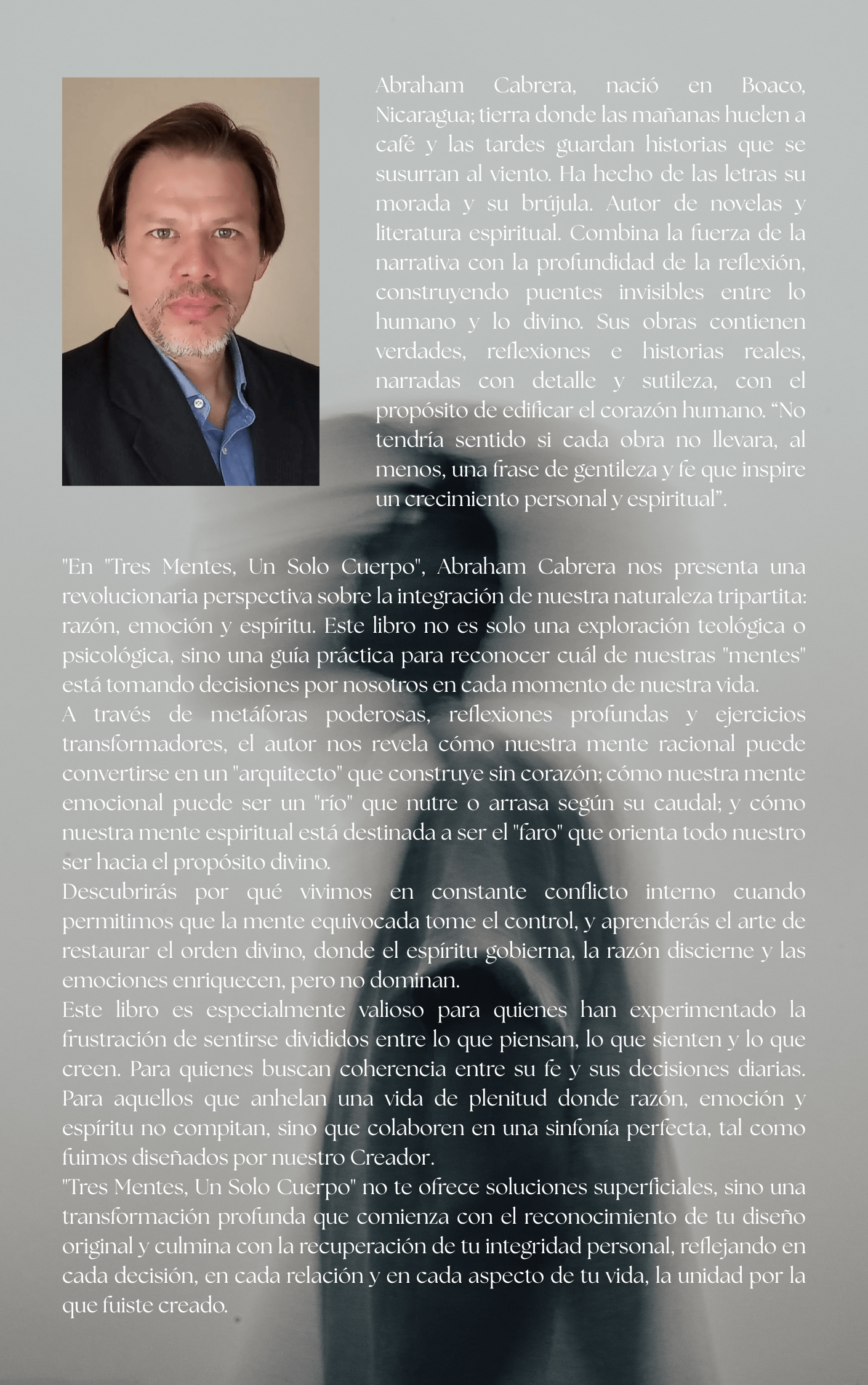 Dentro de ti conviven tres mentes que moldean cada decisión, cada pensamiento y cada paso: la mente racional, la mente emocional y la mente espiritual. Este libro es un mapa que te guía a comprenderlas, equilibrarlas y poner en el trono de tu vida a la única capaz de darte verdadero sentido: la mente espiritual, aquella que nos conecta con nuestro Creador.