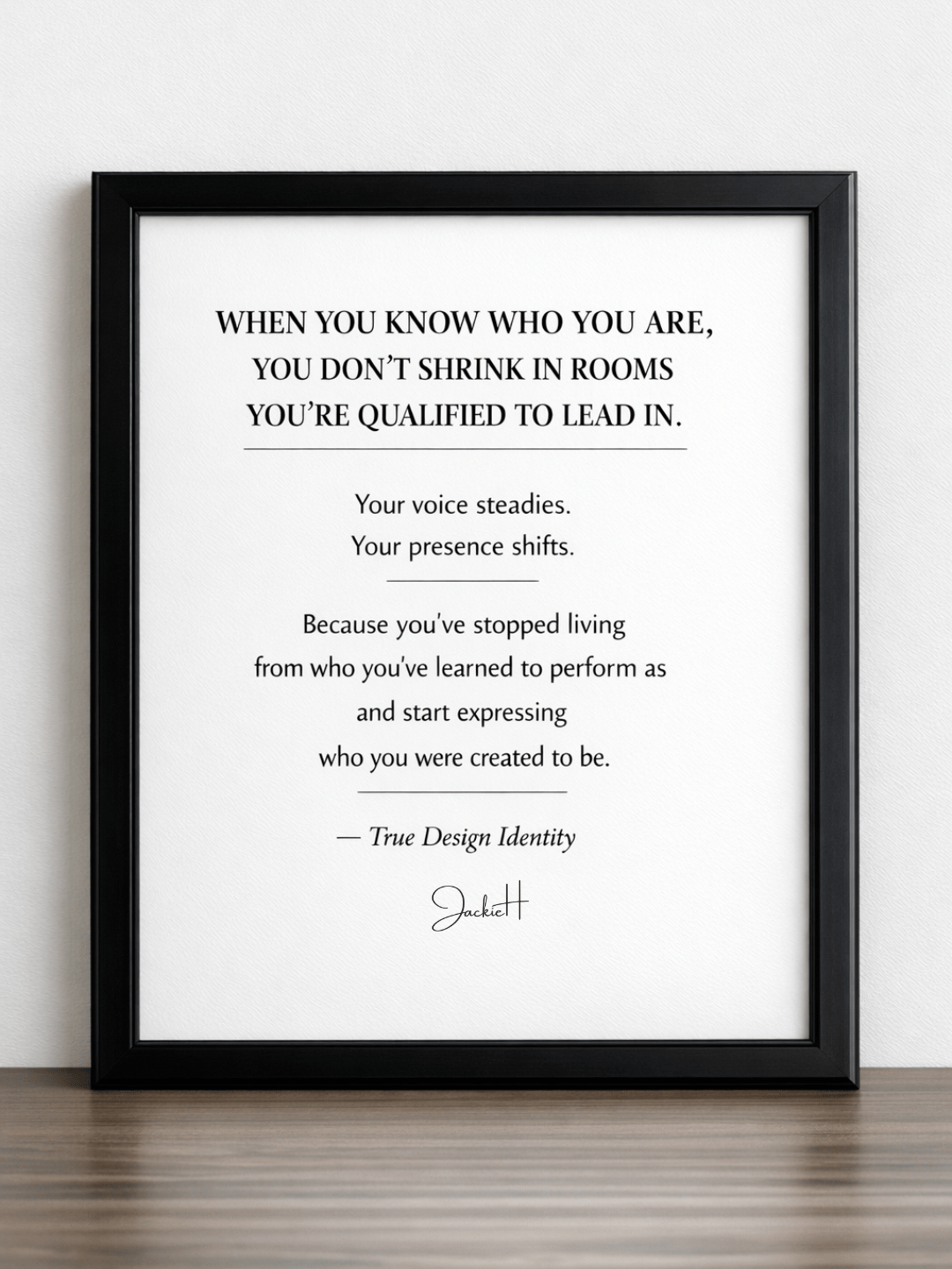 This inspirational identity art and confidence quote print is designed to help you stop shrinking and start expressing who you were created to be. It is an inspirational resource for those who are done performing and ready to embody their true design.