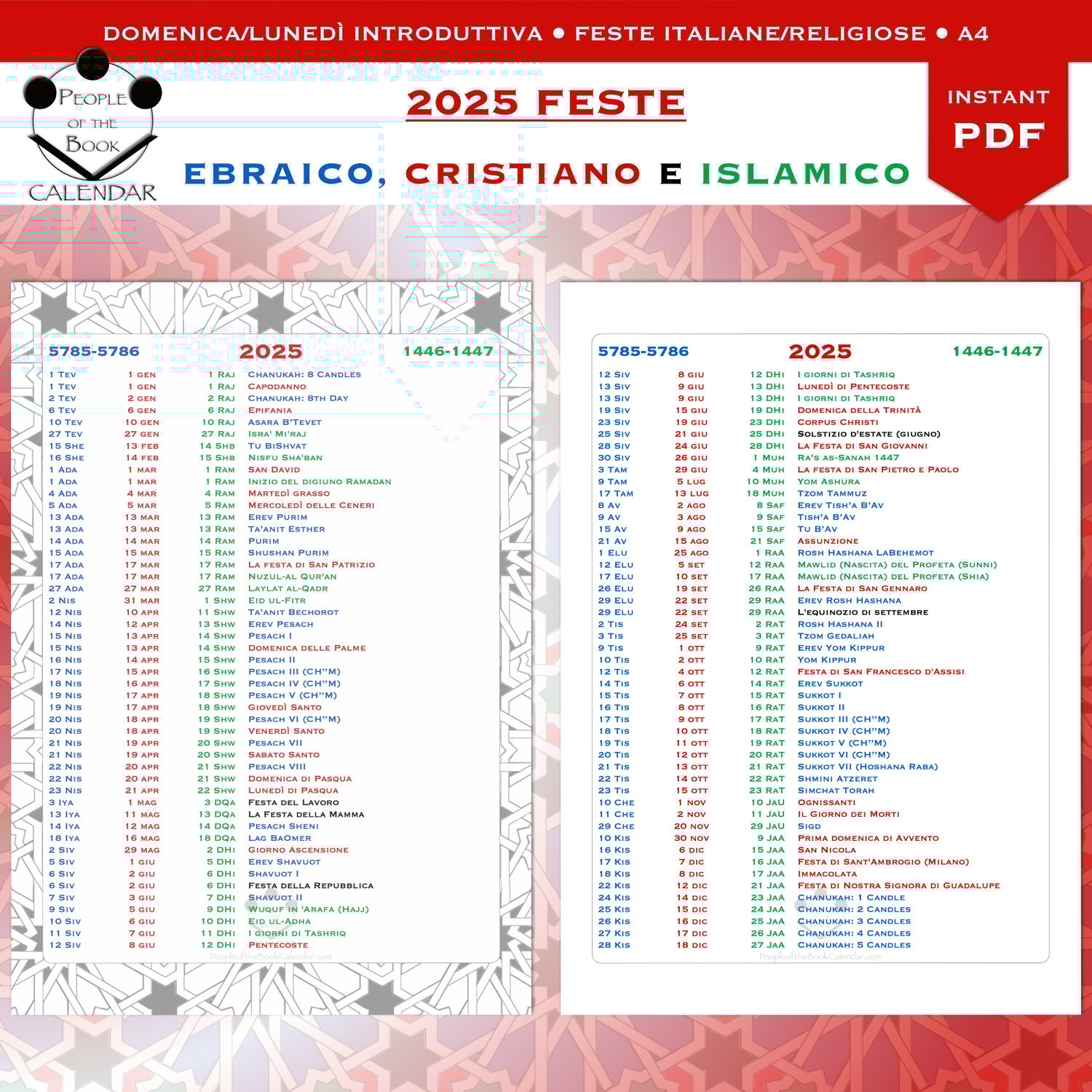 Calendari ebraici, cristiani e islamici combinati in uno. Lo chiamo il Popolo del Calendario del Libro, riferendosi al "popolo della scrittura", in particolare quello delle tre religioni monoteistiche abramitiche.
