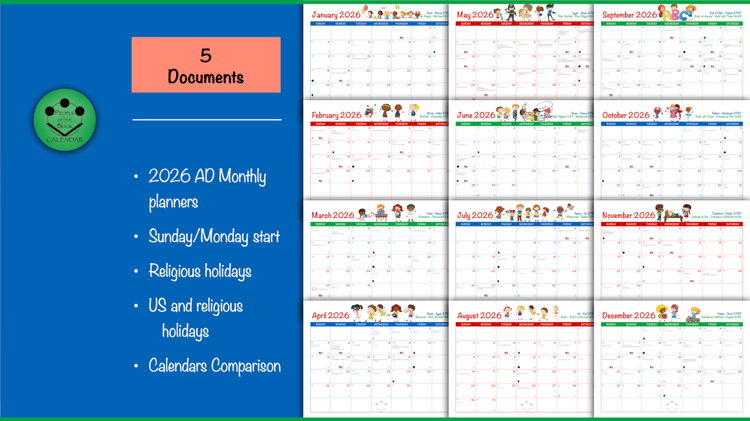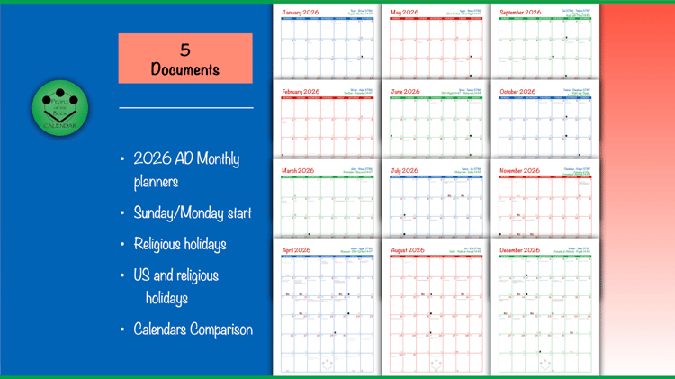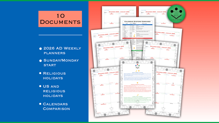 Il calendario cristiano (gregoriano) è usato in tutto il mondo come calendario universale per le imprese, proprio come l'inglese è una lingua commerciale universale. I calendari ebraici e islamici sono ancora in uso oggi dai membri di quelle fedi e in alcuni paesi. Di conseguenza, i calendari che combinano uno di questi con il calendario gregoriano sono facilmente disponibili, ma questo calendario combina tutti e tre in modo che tutti possiamo usare lo stesso.