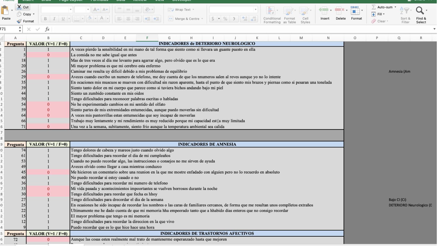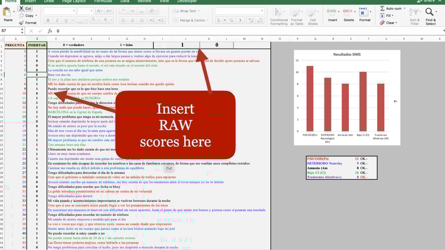 SIMS (Structured Inventory of Malingered Symptomatology) Autoscoring Template (Spanish)