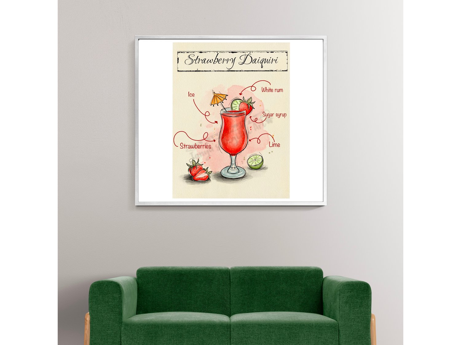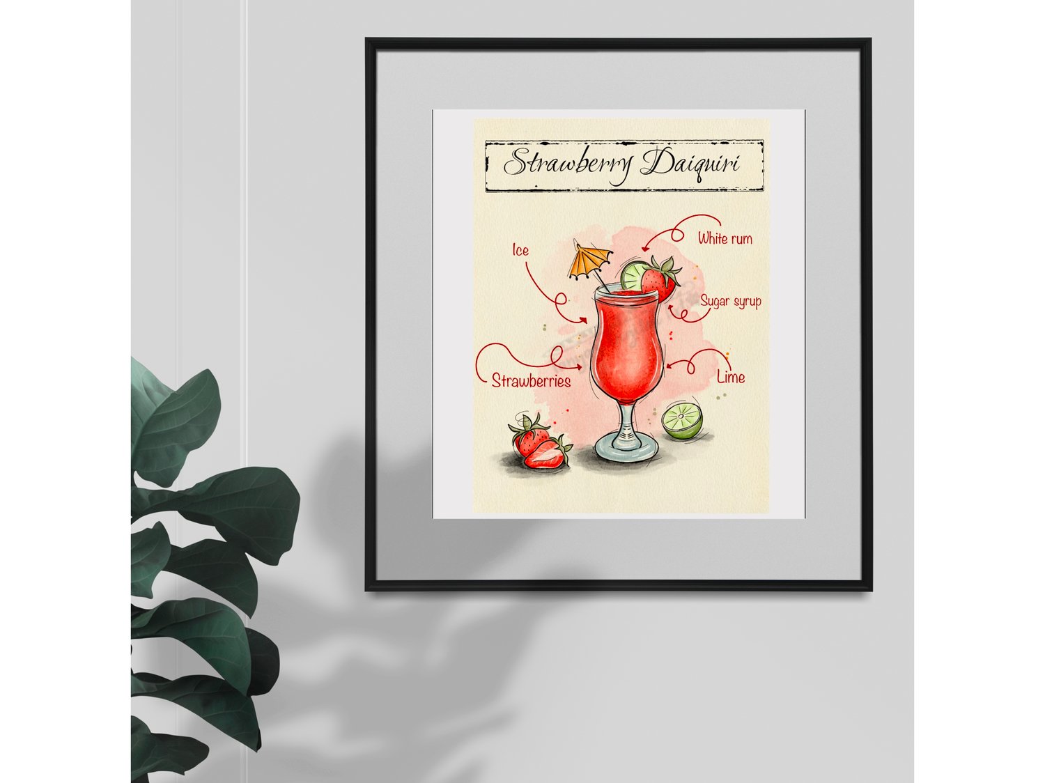 Infuse your home or office with the refreshing charm of a "Strawberry Daiquiri" through this stunning digital watercolor and ink poster. Perfect for creating a lively and inviting atmosphere, this artwork is a delightful addition to any decor style.