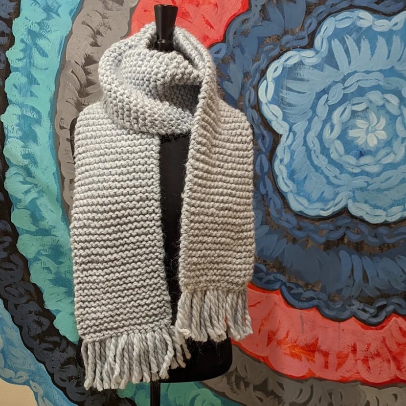 The Begin Scarf was written just for that - the beginning knitter. It is a most basic of scarves: knit every row and you are done! After you have knit this scarf, you will be ready to knit it's matching hat!