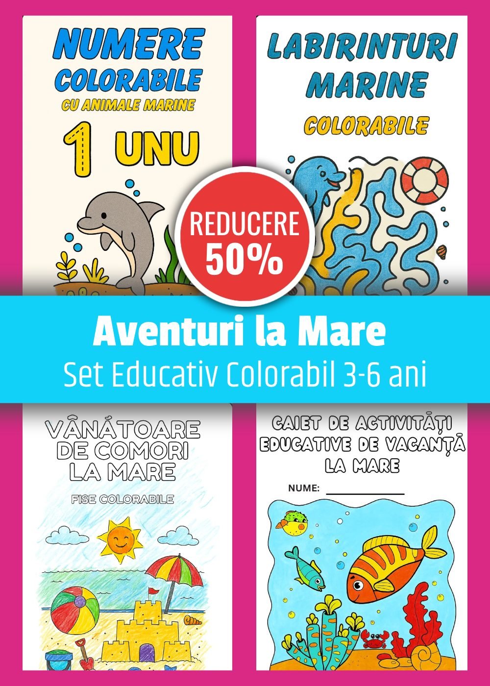 Aventuri la Mare – Set 4 Cărți Educative Colorabile 3–6 ani - Printabile