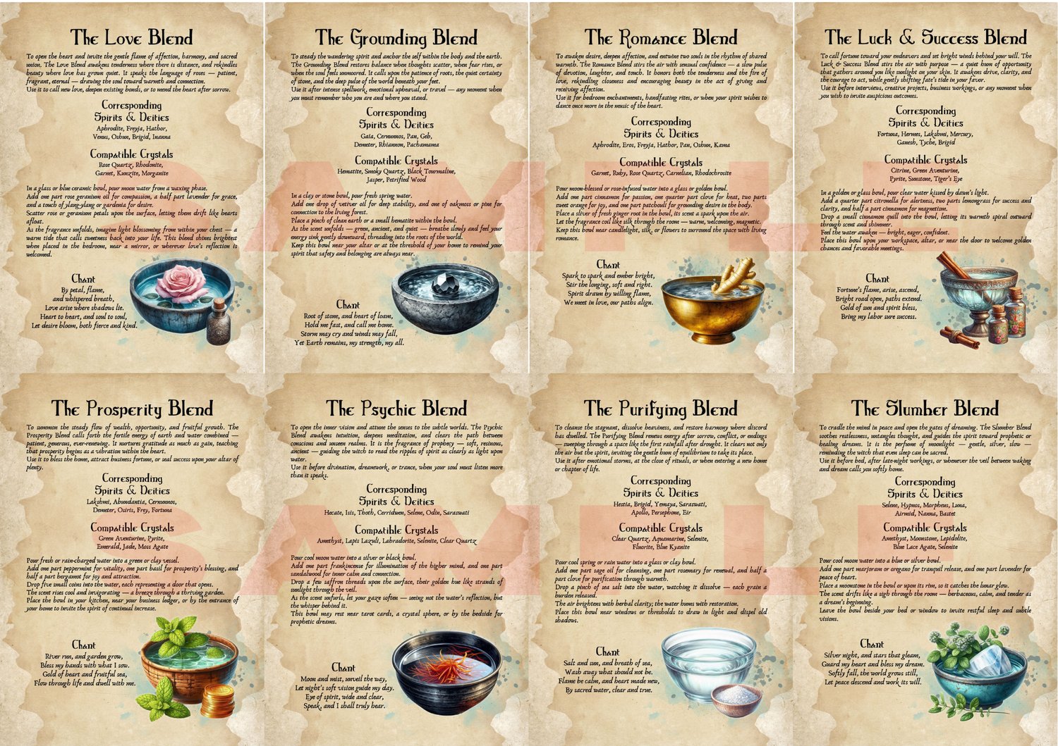 Discover the serene art of Water Bowl Magick with these beautifully illustrated printable grimoire pages. Explore the spirit of the sacred bowl, poetic rituals, vessel correspondences, and 18 enchanting Water Bowl Blends — from Angel and Love to Shadow and Banishing.