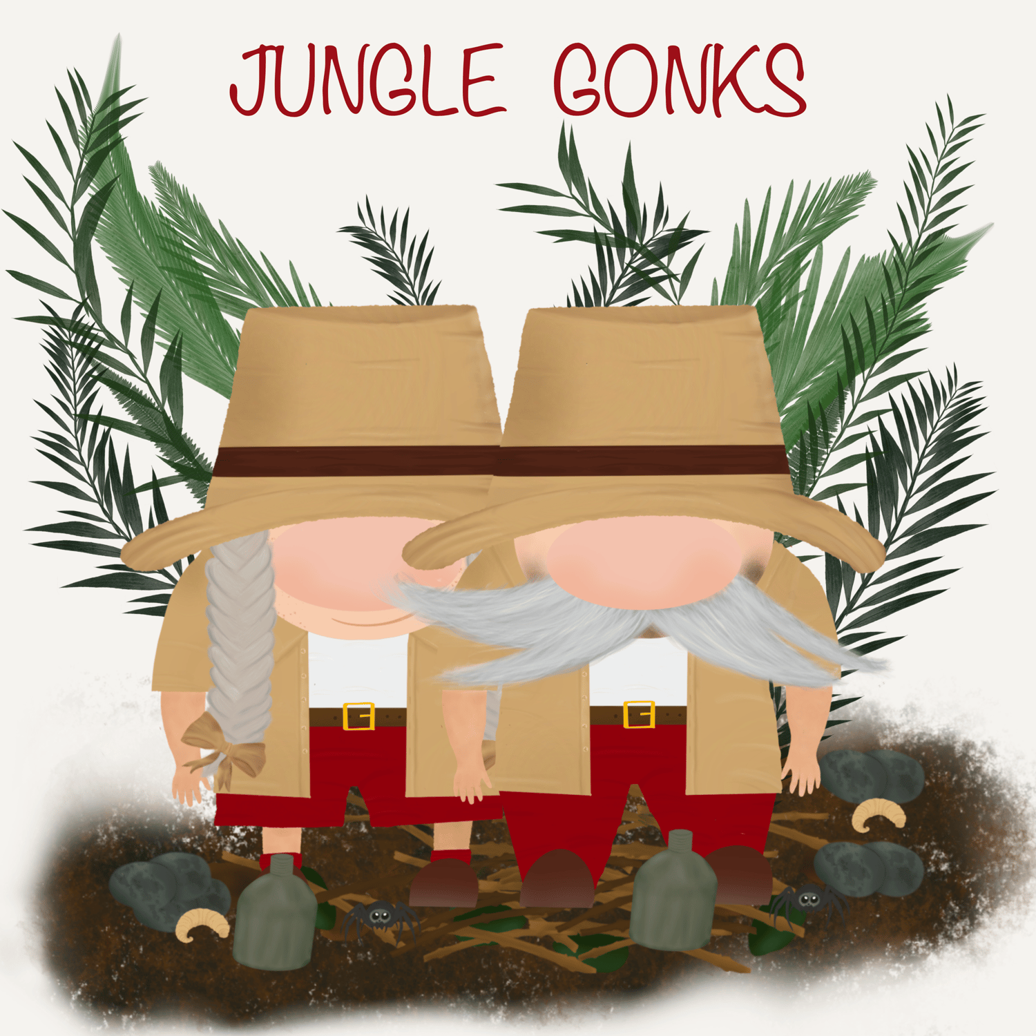 A set of hand drawn jungle gnomes, each with transparent background perfect for creating your designs.