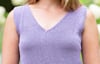 Materials: Sport weight silk/cotton blend yarn: 525 (600, 680, 775) (860, 945, 1020) (1125, 1235, 1320, 1435) yards. Model knit in Knit One Crochet Too Cozette (62% silk / 30% cotton / 8% polyamide; 50 grams / 255 yards): color #781 Wisteria.