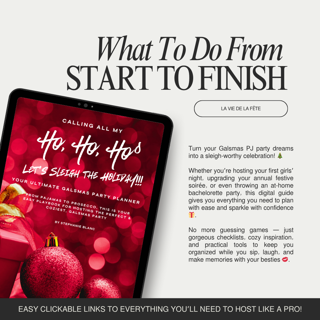 Whether you’re planning your first Galsmas PJ party or just want to elevate your at-home celebrations, this guide keeps everything beautifully organized so you can focus on what matters most: Laughter, festive cocktails, and unforgettable memories with your besties ✨.