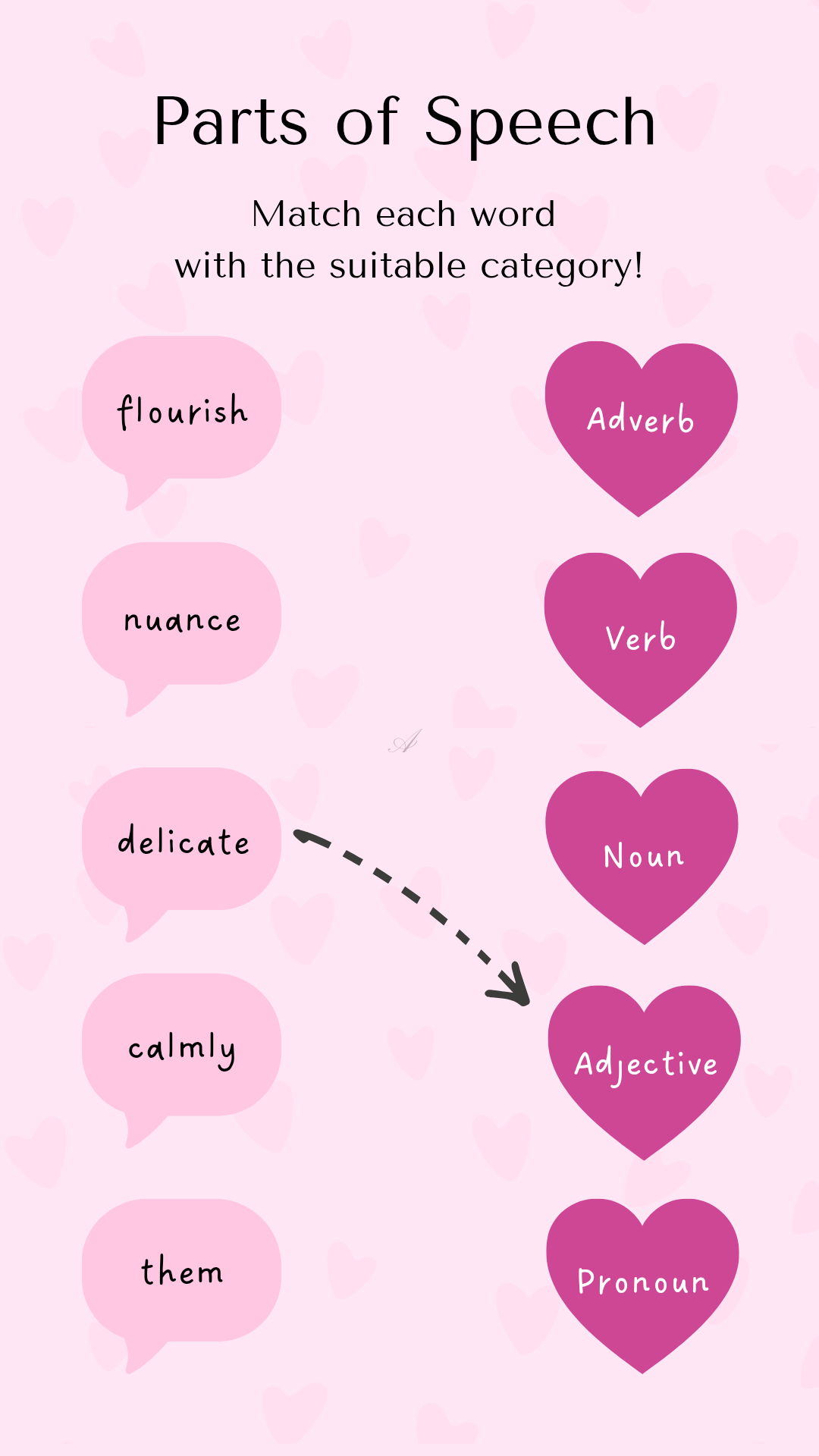 English Worksheet "Parts of Speech" (B) | Pink