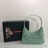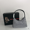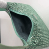 Un modello iconico di Prada, questa mini borsa hobo è presentata in una preziosa variante in raso, impreziosita da cristalli sintetici e firmata dall'emblematico logo triangolo smaltato.