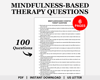 Designed to enhance client engagement and drive positive change, this therapy resource offers a collection of mindfulness-based cognitive therapy questions. Tailored to the principles of mindfulness-based therapy, these therapy questions will guide your sessions towards productive conversations and transformative outcomes. These mindfulness questions are made to elicit insightful responses and encourage clients to explore their goals and aspirations.