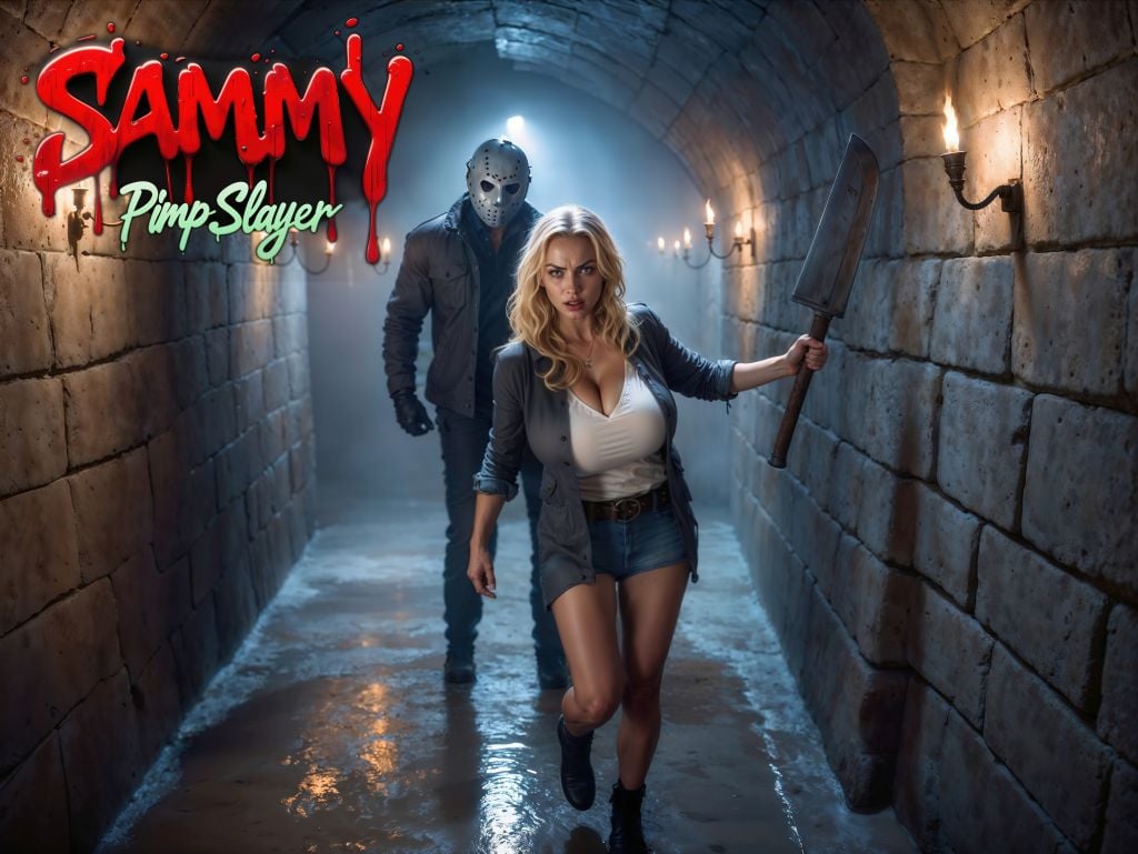 Deep beneath the surface, in torch-lit tunnels where secrets rot and killers stalk, Sammy walks into the nightmare armed with nothing but grit, curves, and a machete big enough to silence legends.