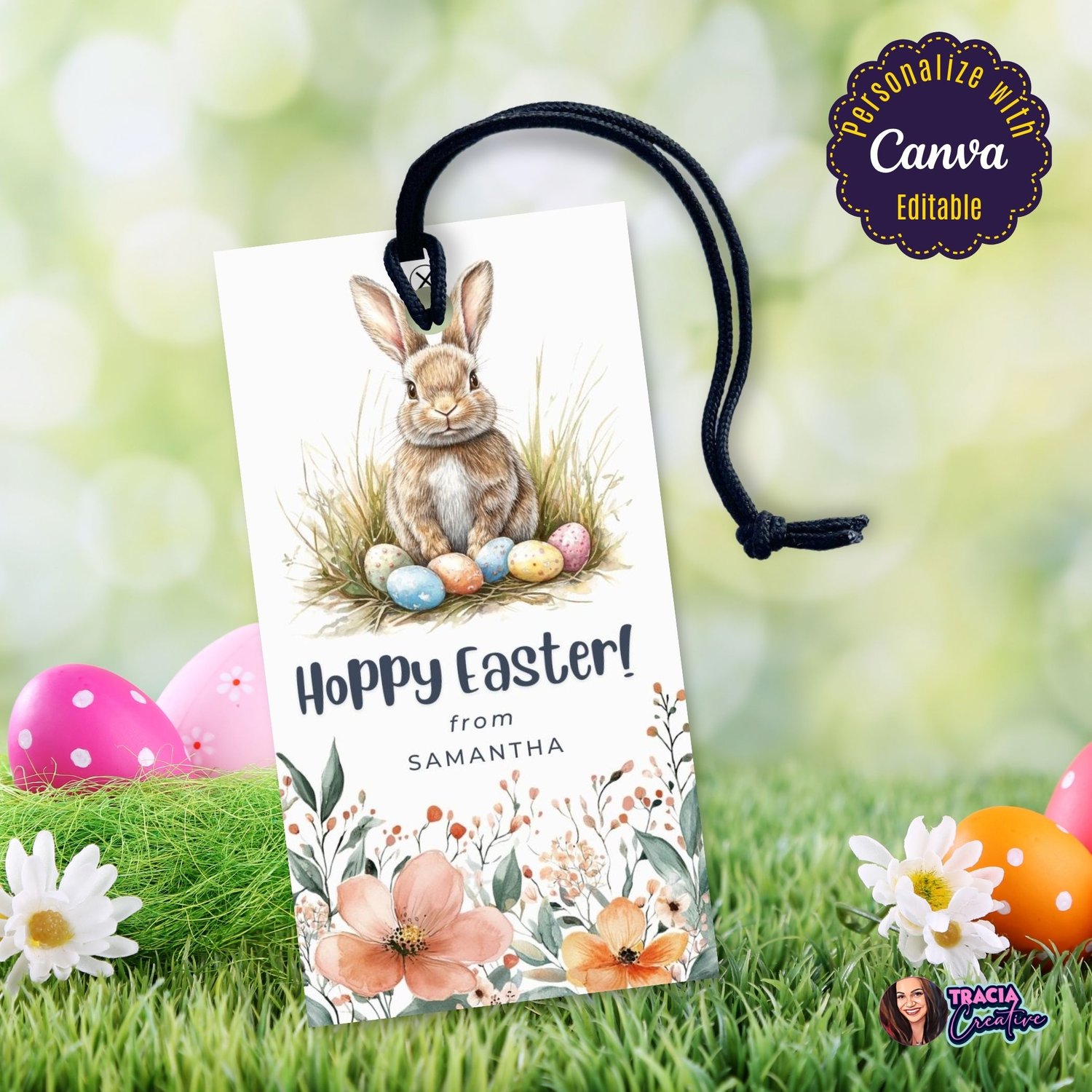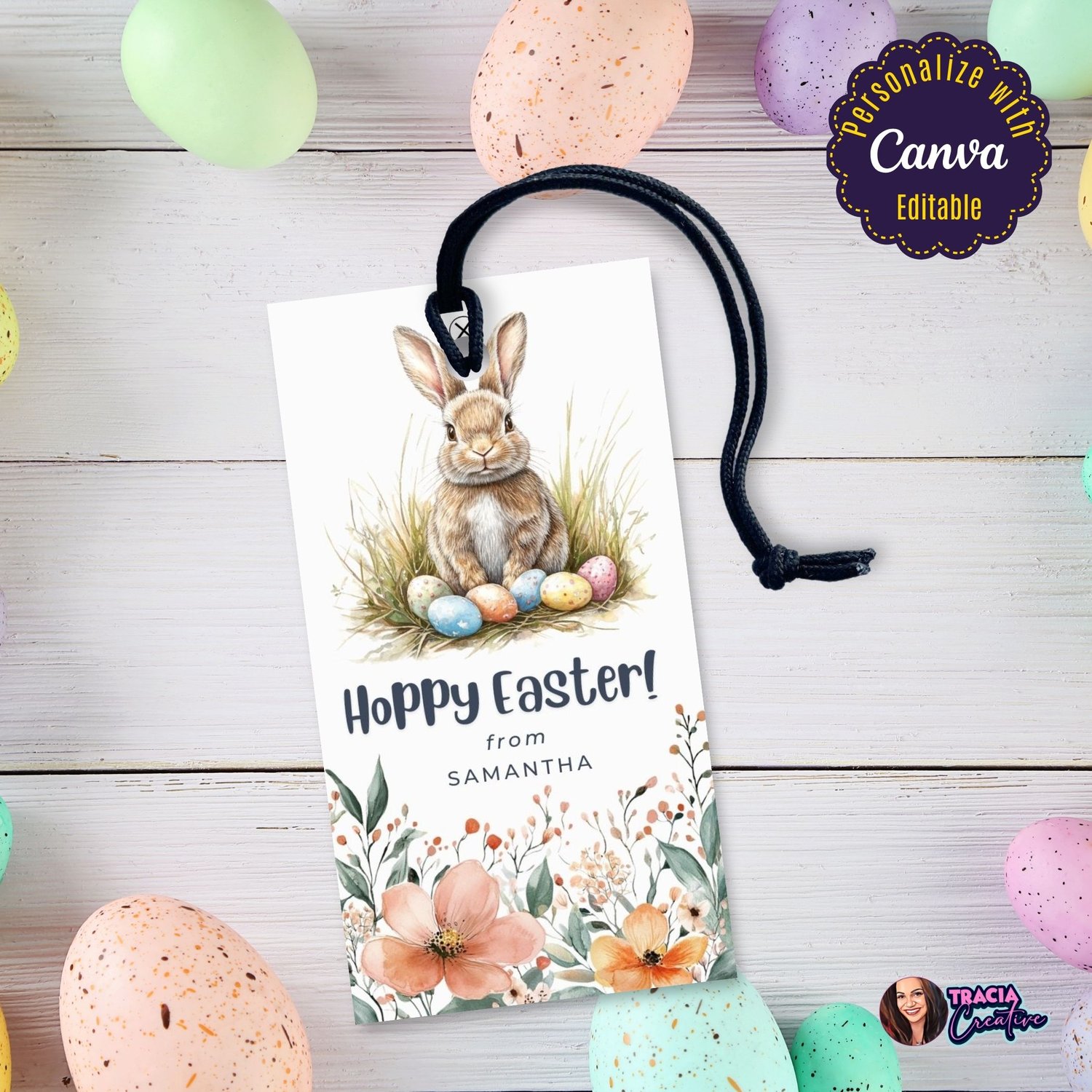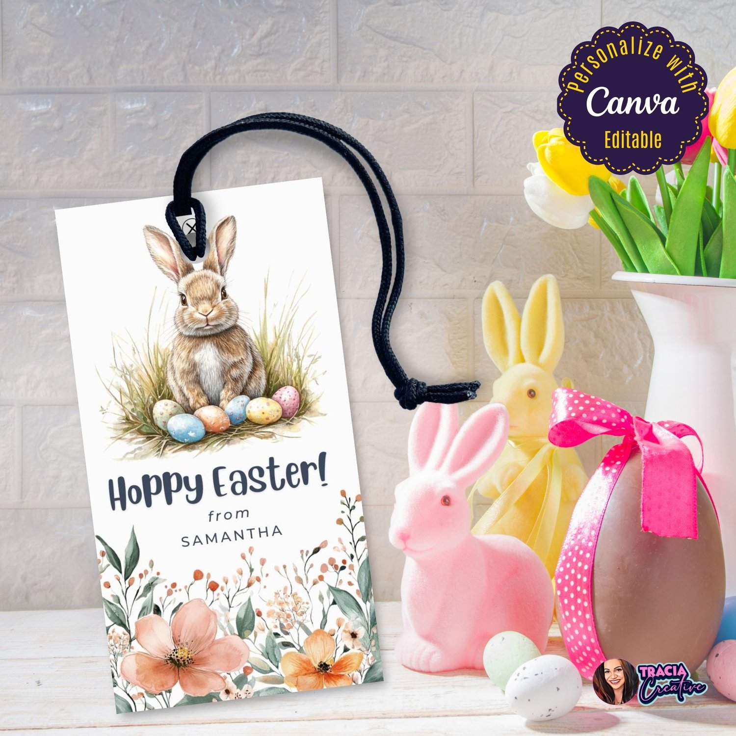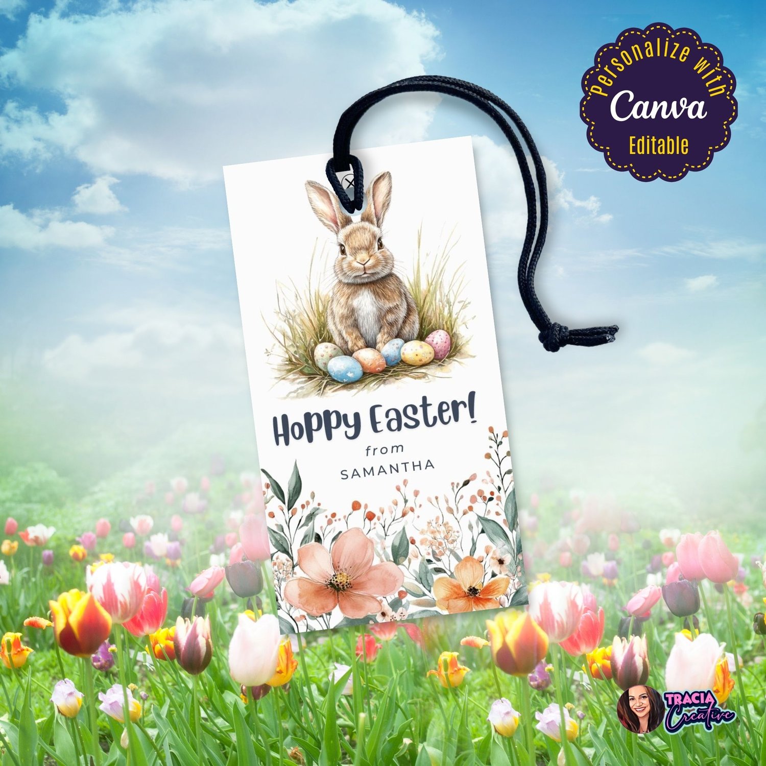 Hoppy Easter Editable Easter Gift Tag – Editable in Canva (2x3.5 inches)