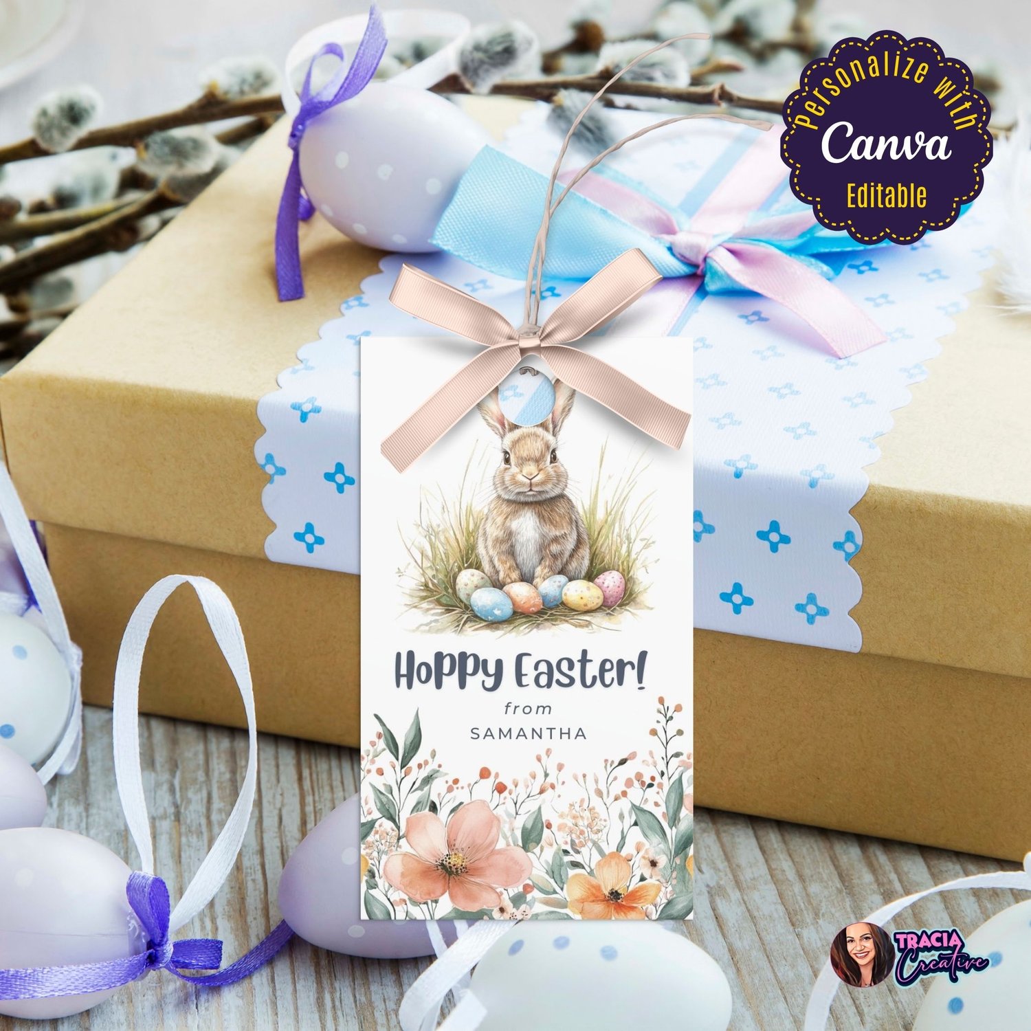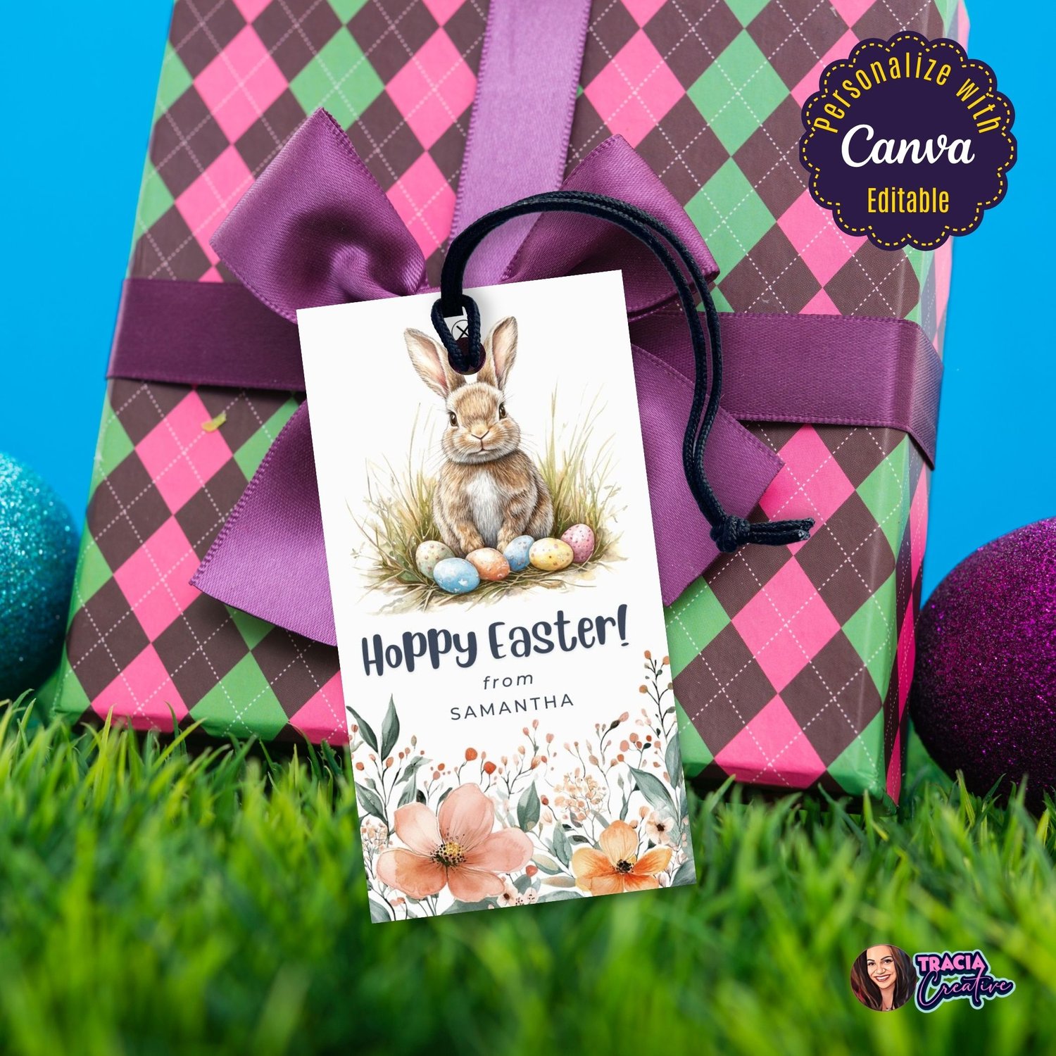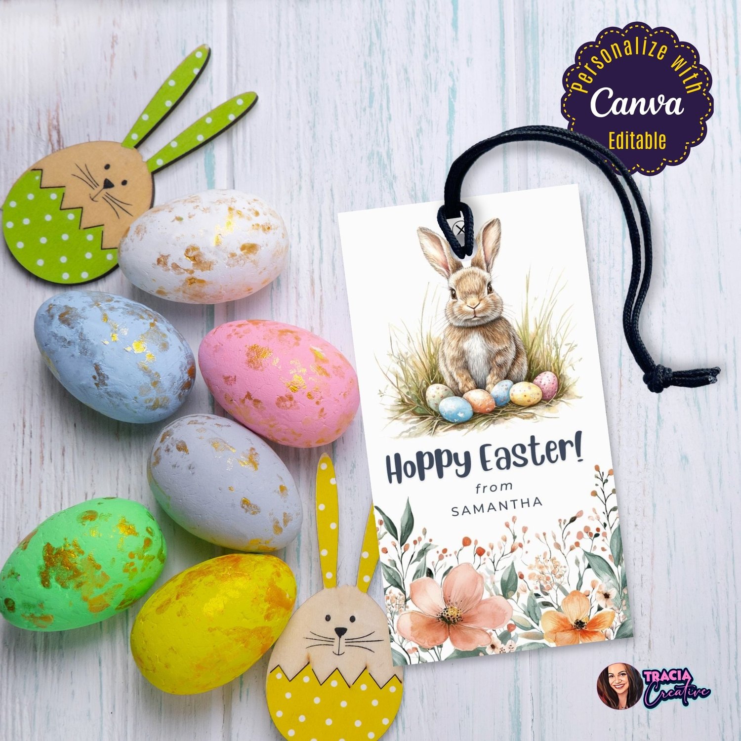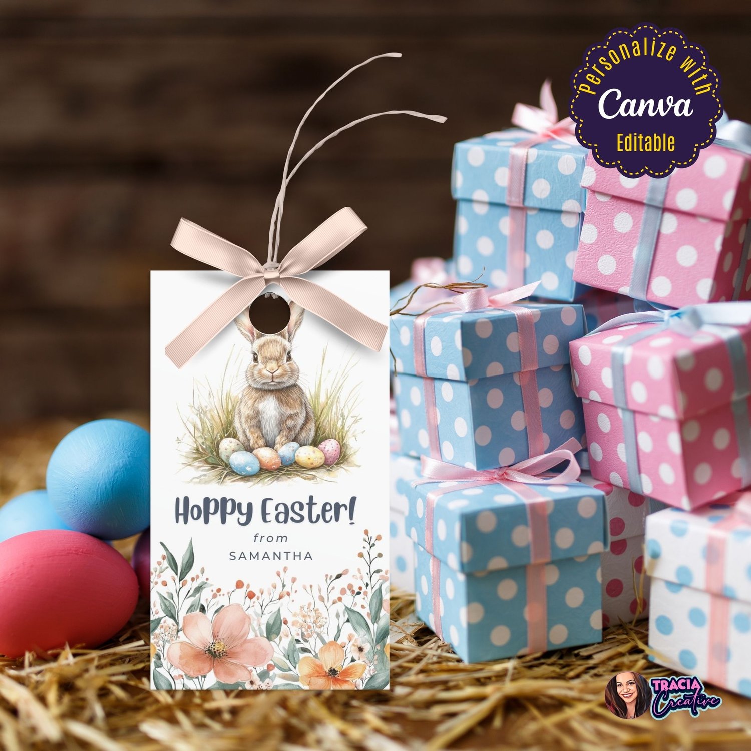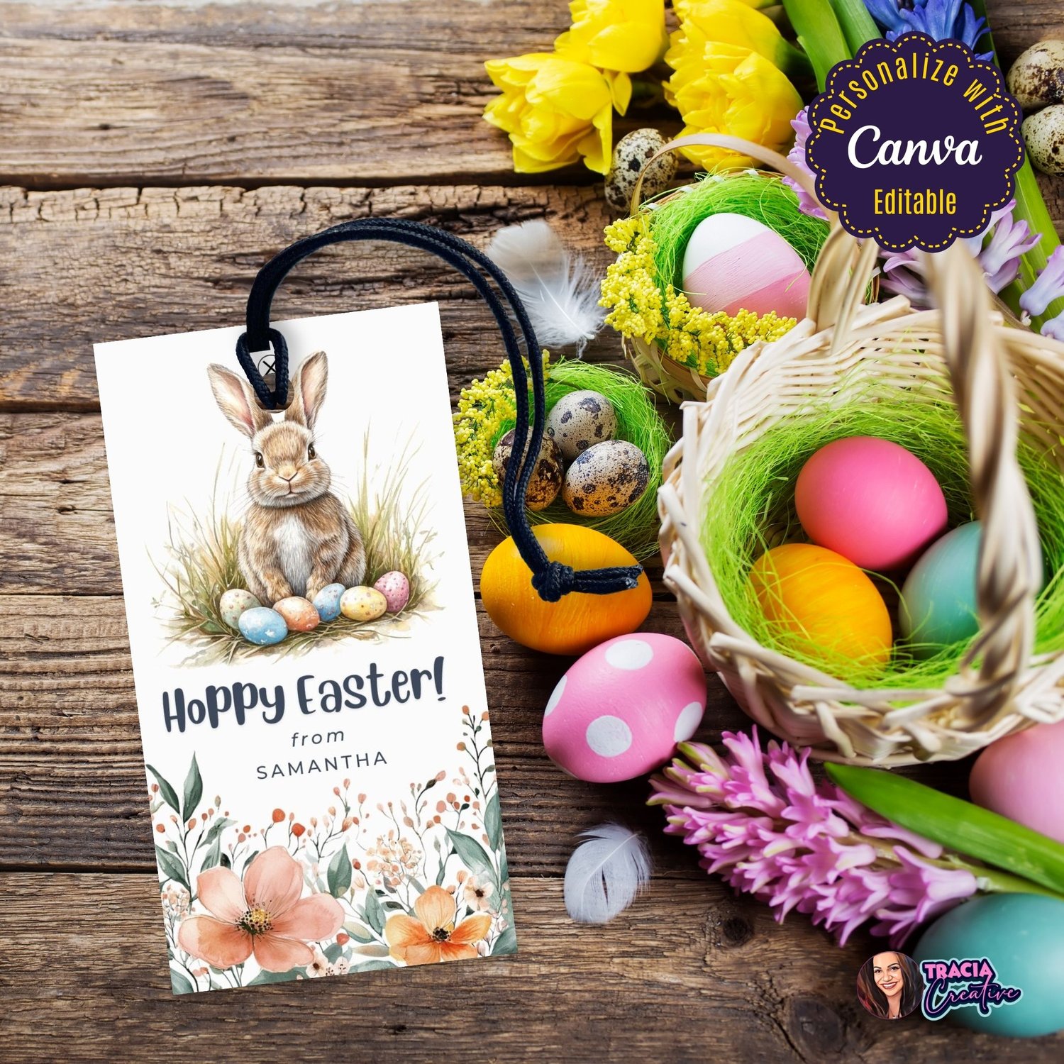 Hoppy Easter Editable Easter Gift Tag – Editable in Canva (2x3.5 inches)