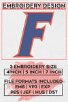 Florida Gators NCAA College Football Team F Logo Embroidery Designs, NCAA Florida Gators Machine Embroidery Files, NCAA Logo embroidery designs, NCAA Florida Logo, Digital Download