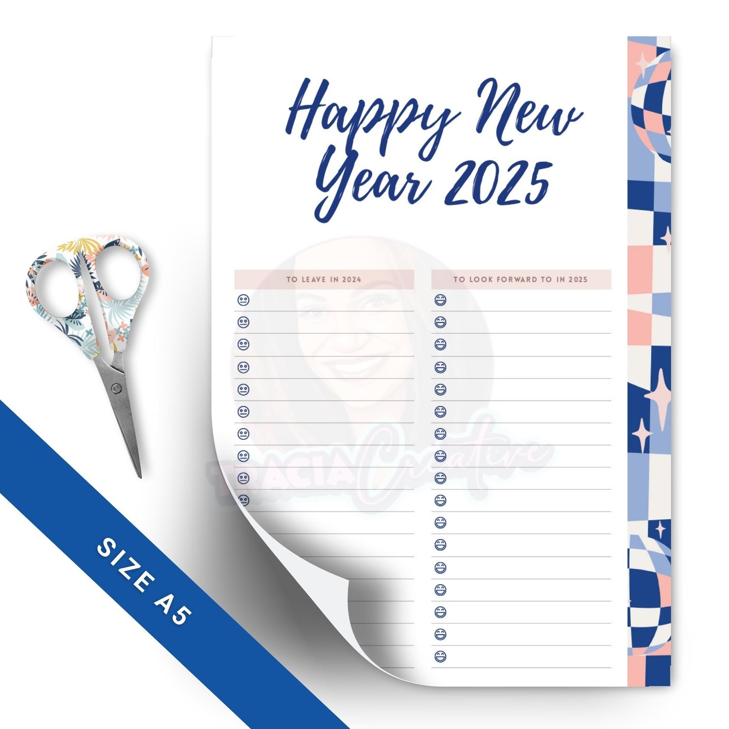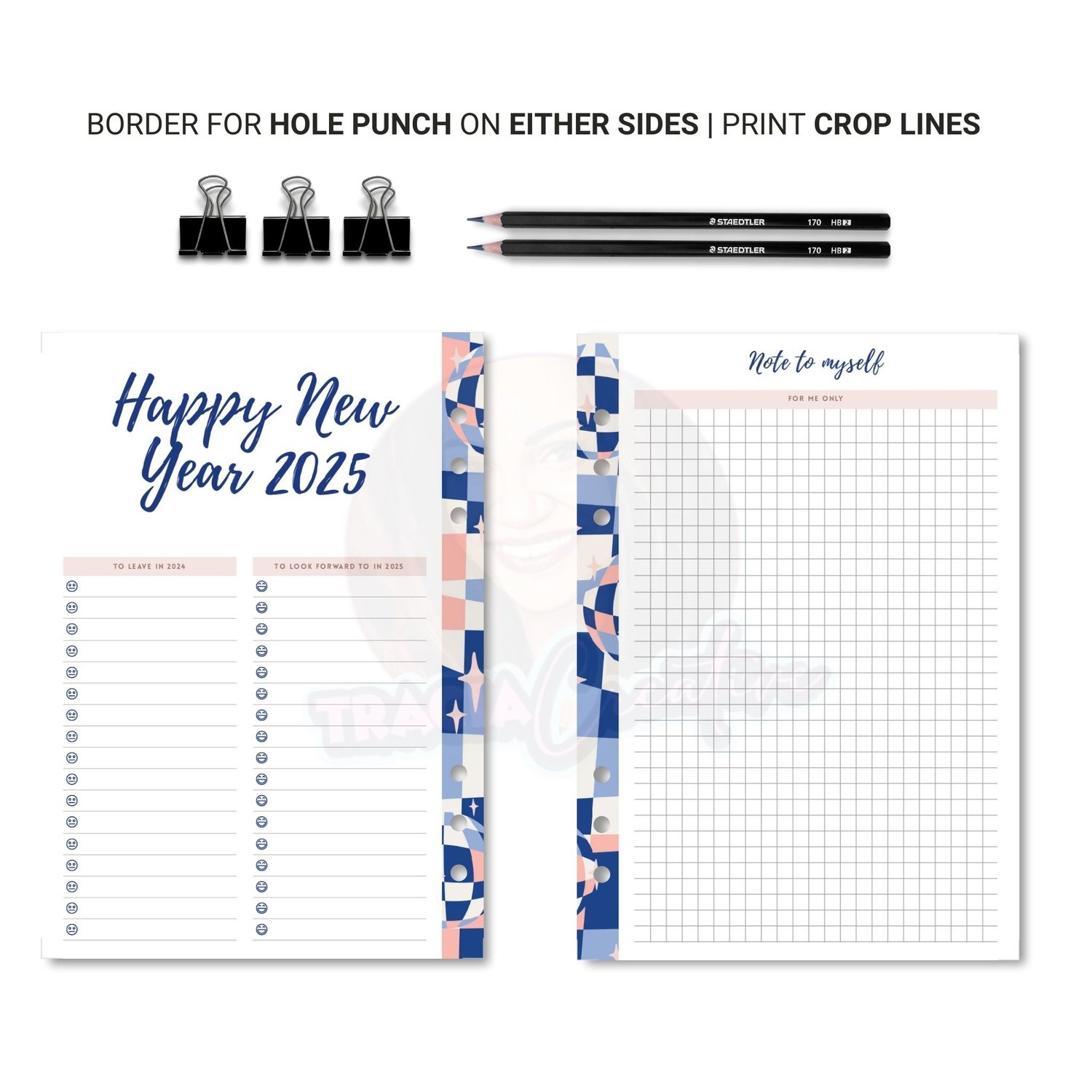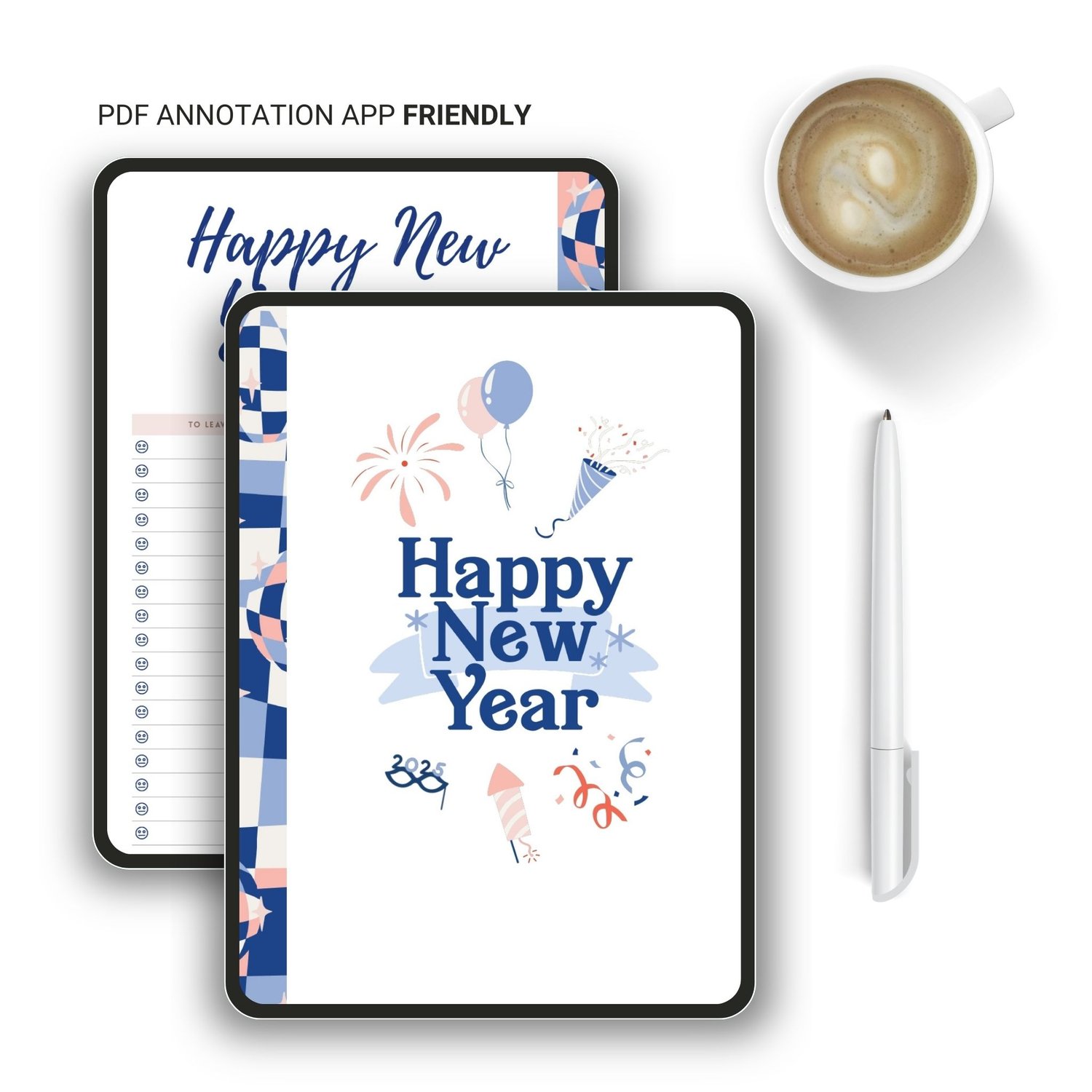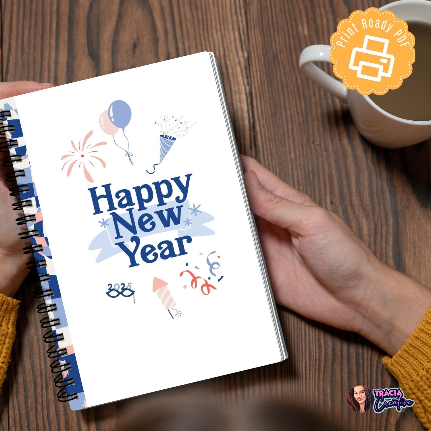 Happy New Year 2025 and Resolutions Planner - Printable Digital Download PDF