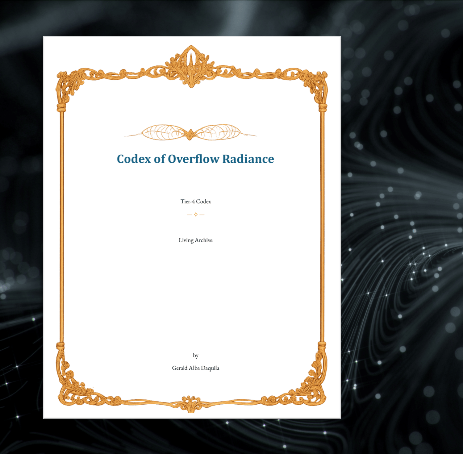 The T4 Codex of Overflow Radiance emphasizes the importance of radiant giving and the amplification of joy and abundance. It encourages embodying gratitude and light for collective upliftment, governed by Akashic Law. This living codex serves as a guide for stewardship, promoting the circulation of resources and enhancing community well-being through shared generosity.