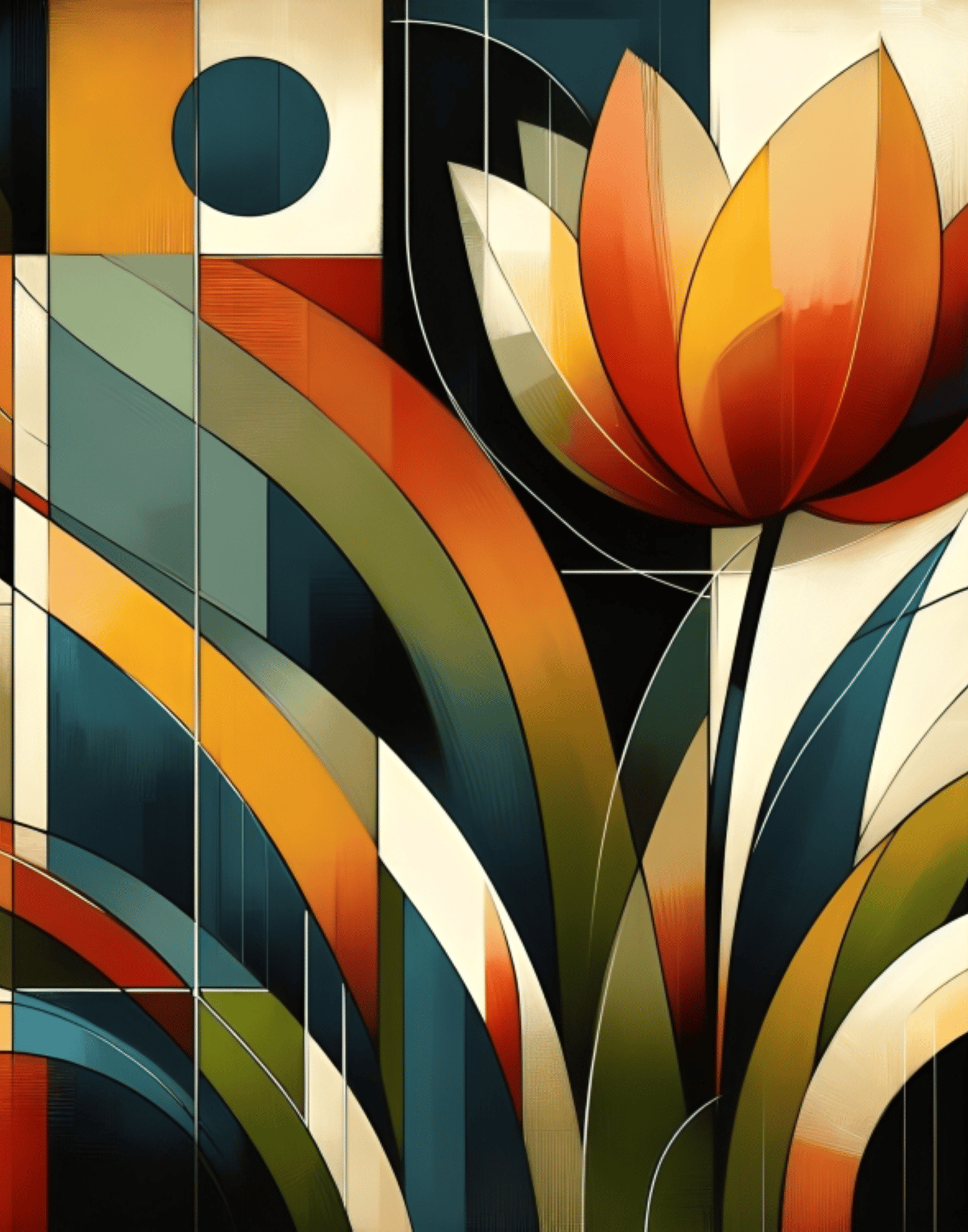 Tulip Abstract Art, Geometric Tulip Flower, Top Flower, Best Floral Art.
