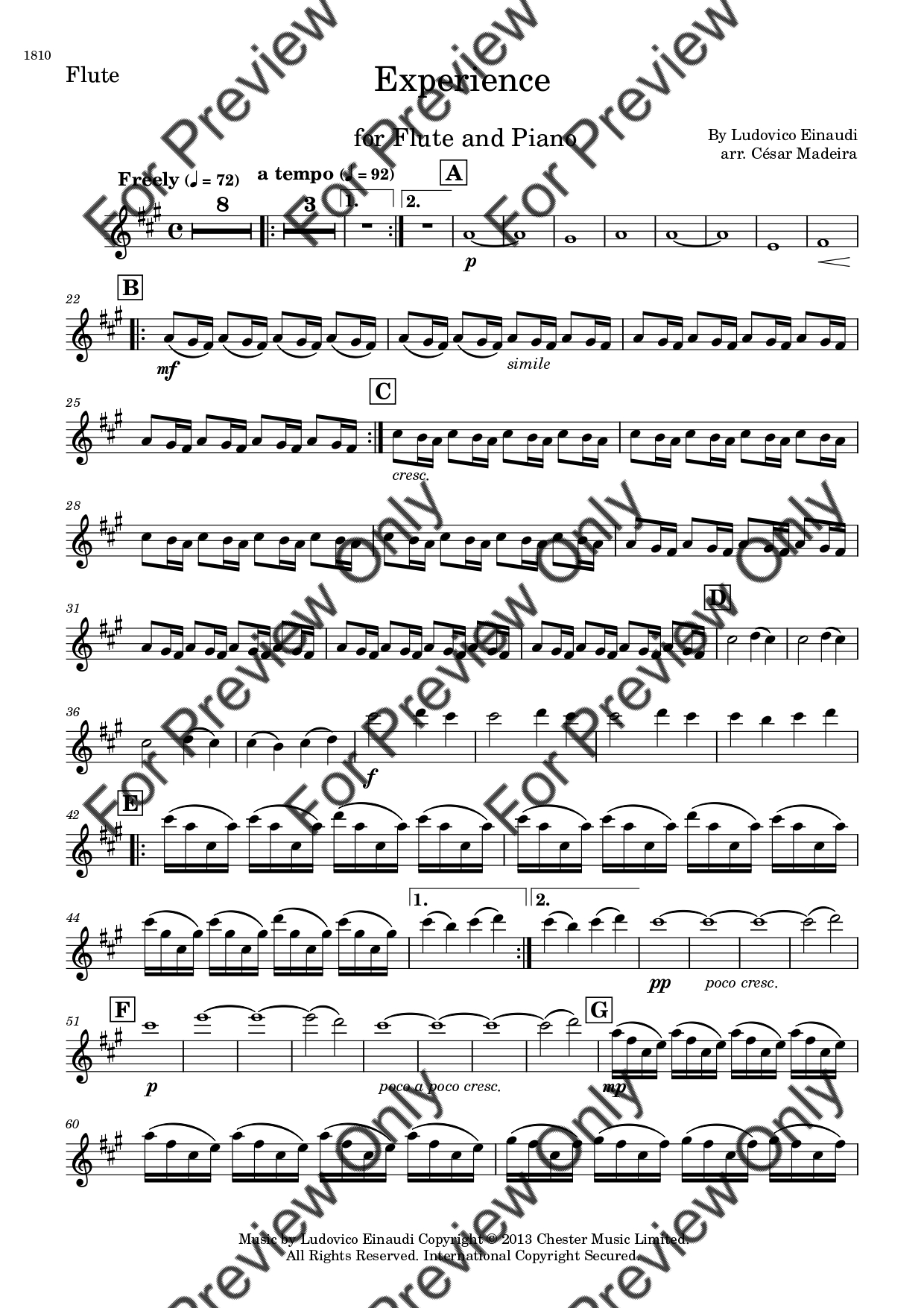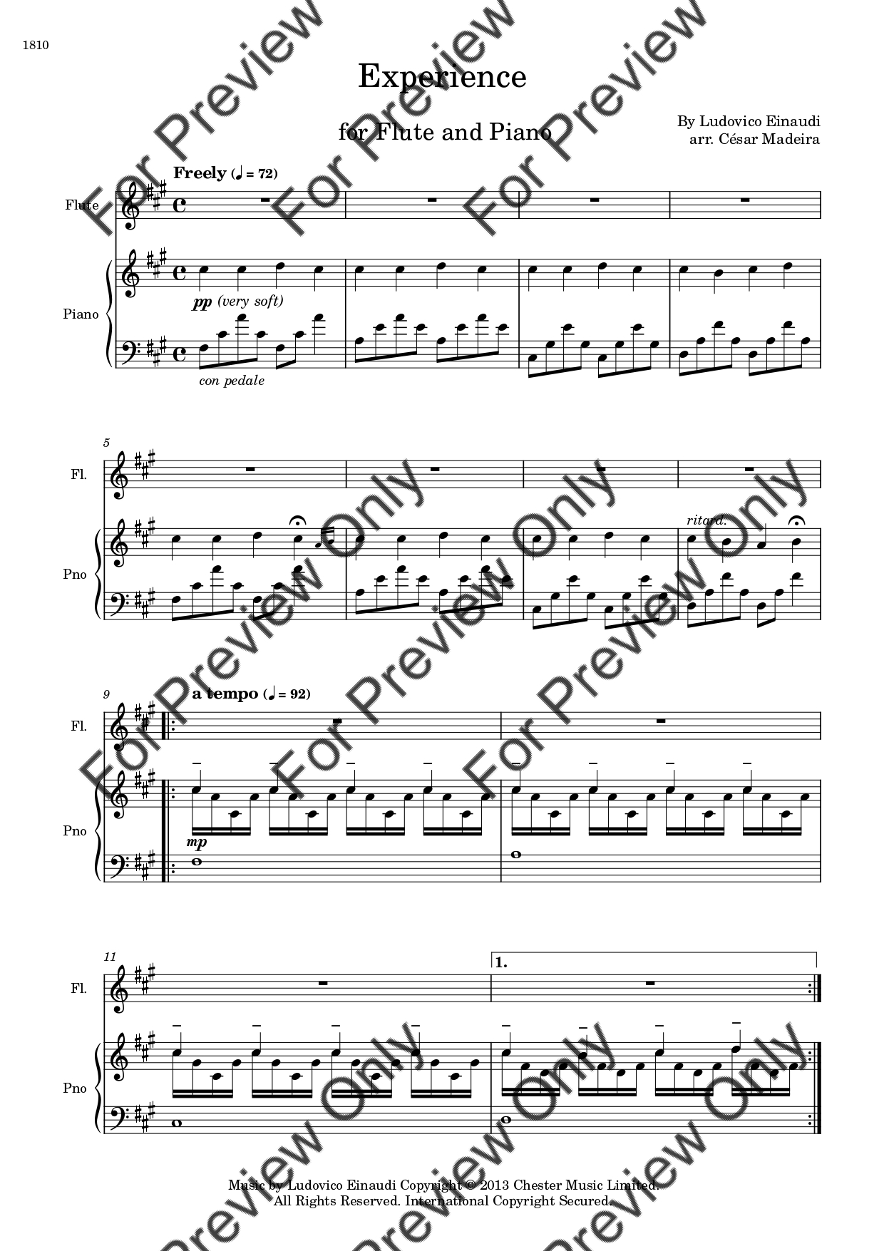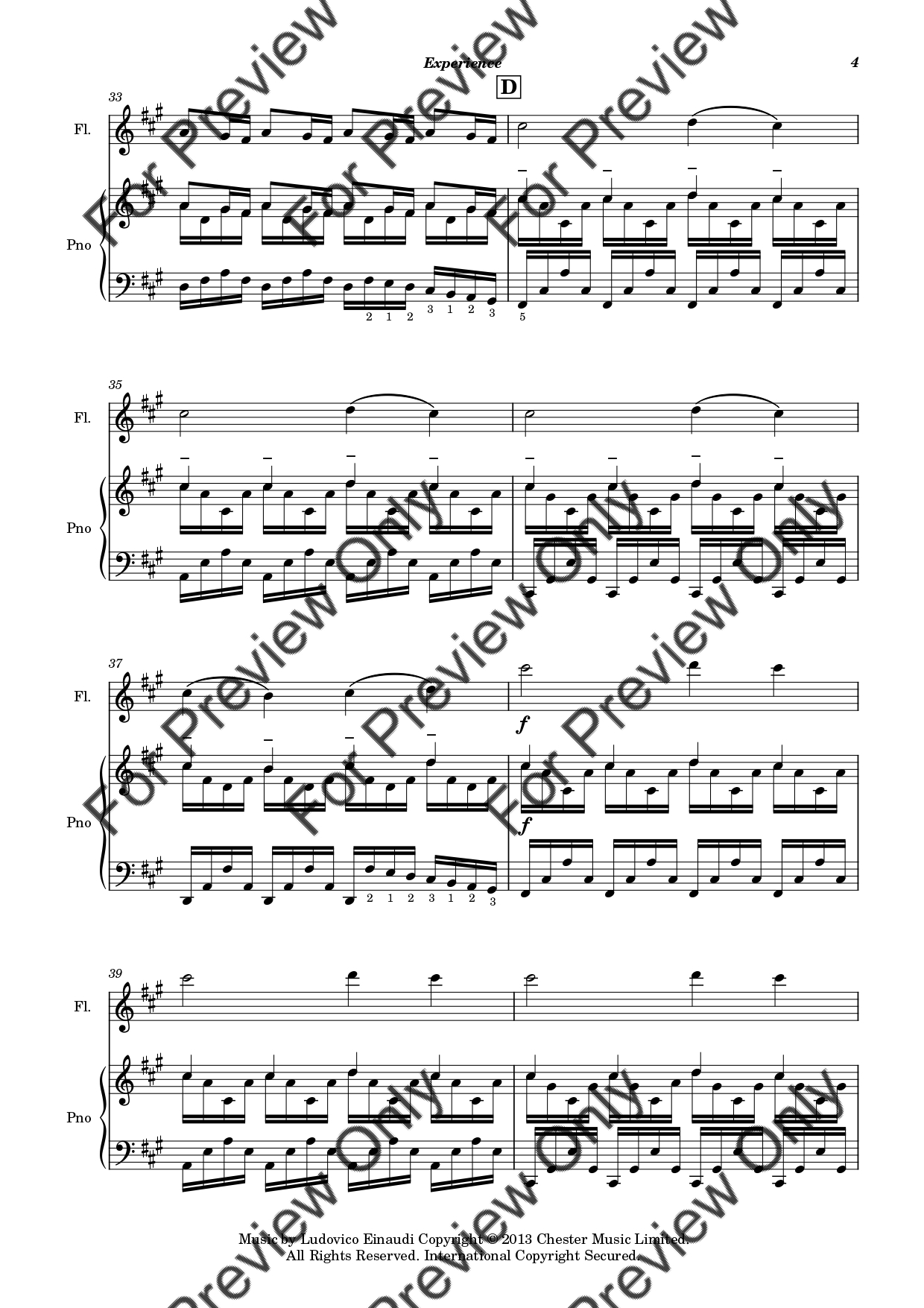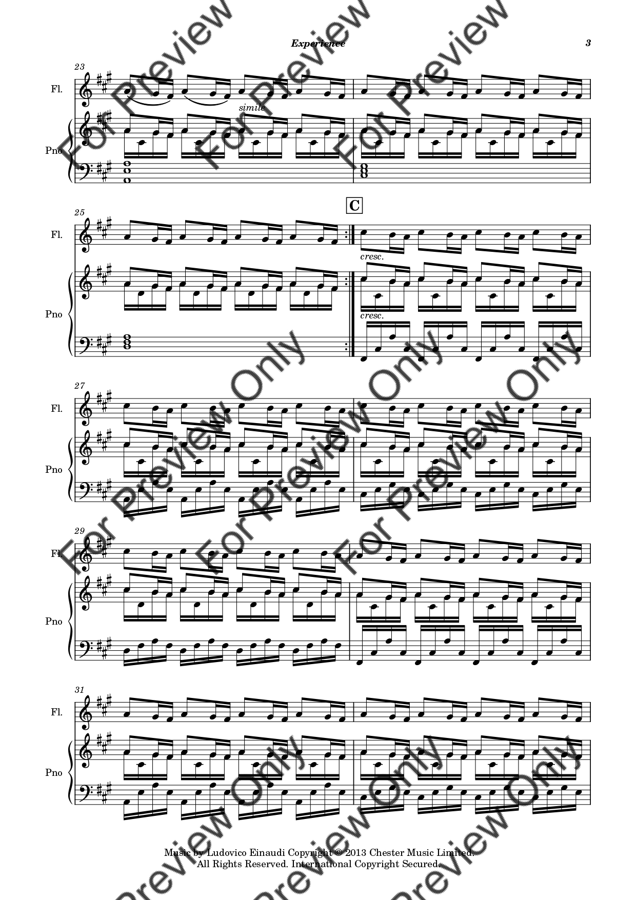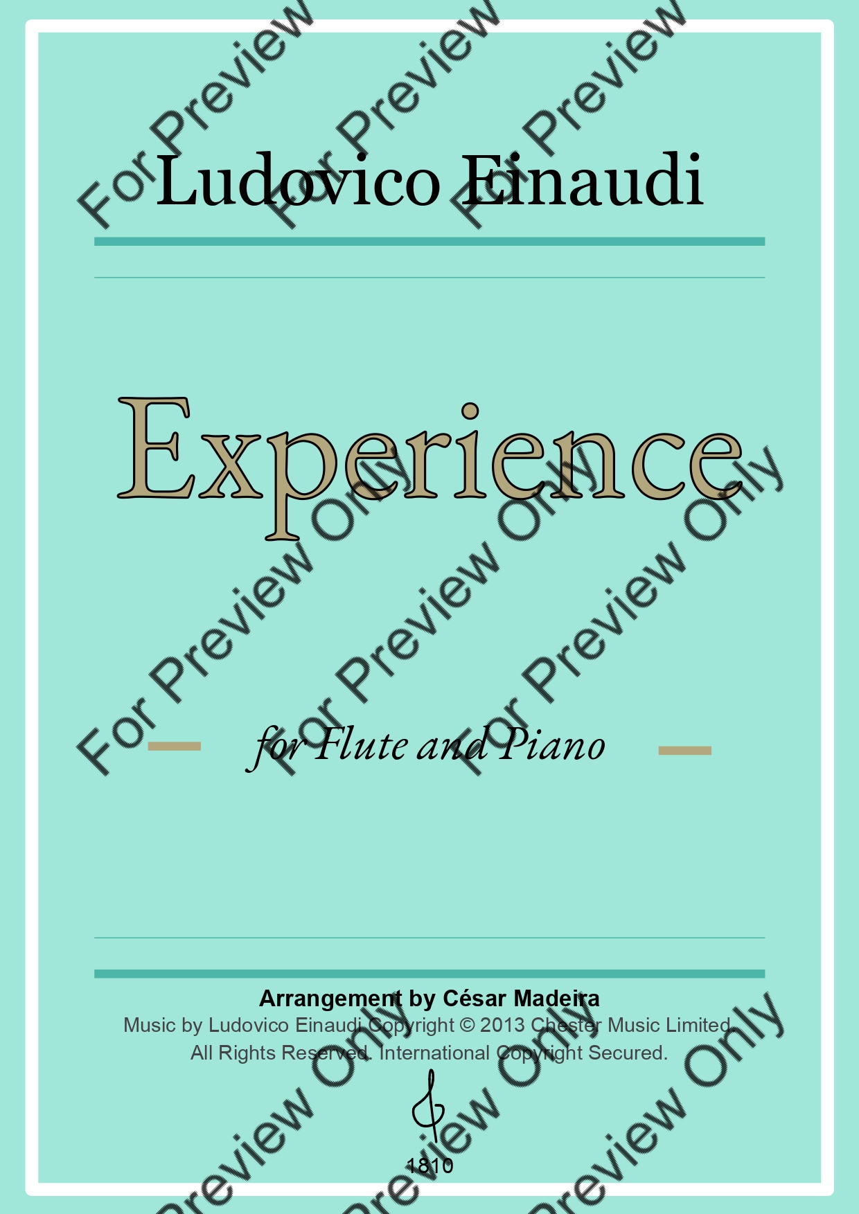 Experience by Ludovico Einaudi. Arrangement for Flute and Piano. With Full Score and Individual Parts. Have fun!